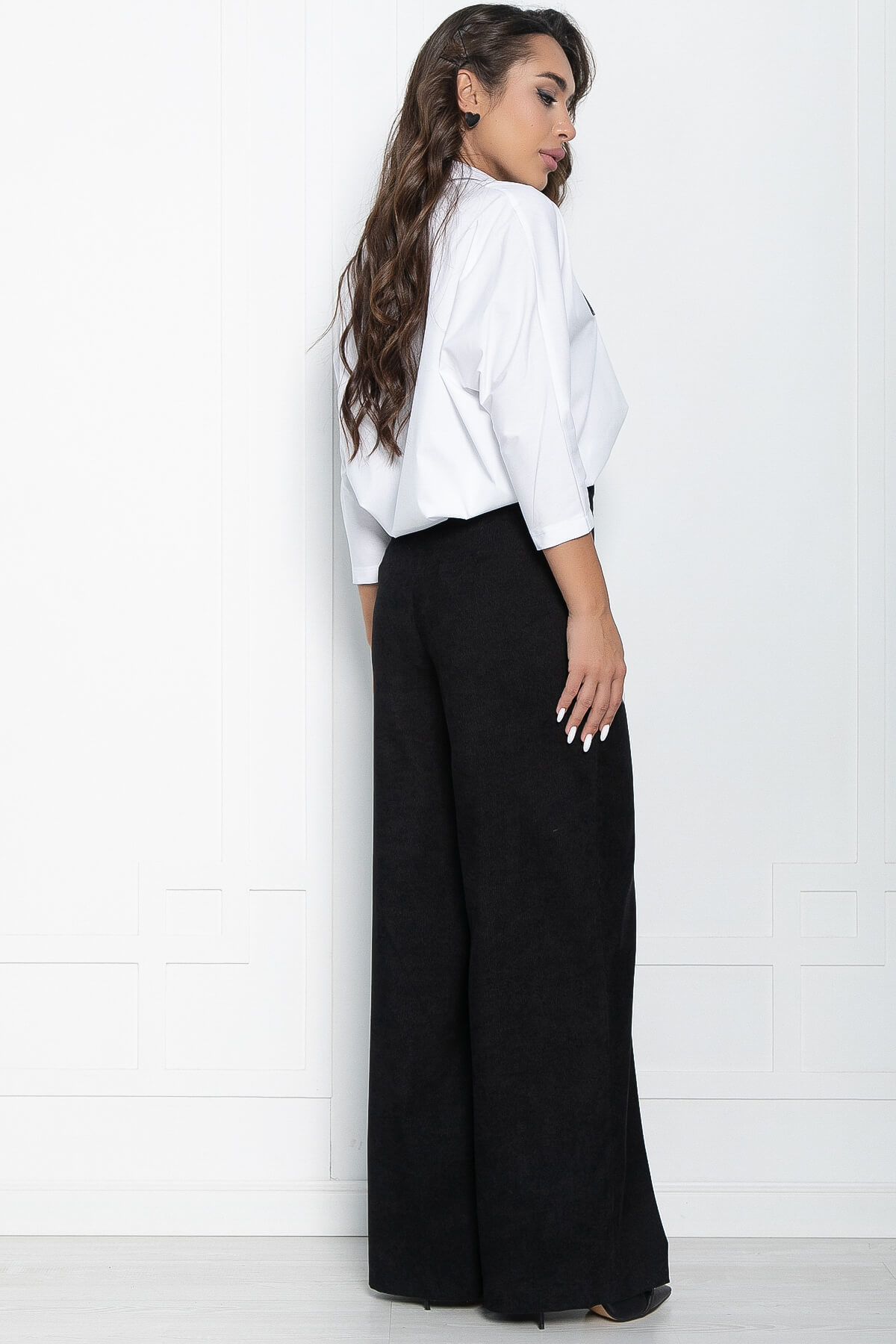 Широкие брюки делают образ элегантным, визуально вытягивают силуэт. Оригинальная модель идеально сидит на фигуре любого типа благодаря завышенной линии талии, ростовка брюк рассчитана таким образом, чтобы брюки подходили как для высоких девушек, так и для невысоких. Приталенный силуэт (не оверсайз), красивая форма, черный цвет - любимая классика, придающая сексуальность образу. Демисезонные стильные брюки сшиты из прочного материала без утеплителя. С такой моделью штанов можно легко составить множество повседневных образов: в школу, на работу и деловую встречу. А также нарядные образы: на день рождения, на прогулку по городу с друзьями. Брюки подойдут на осень, весну и как зимний и летний универсальный вариант
