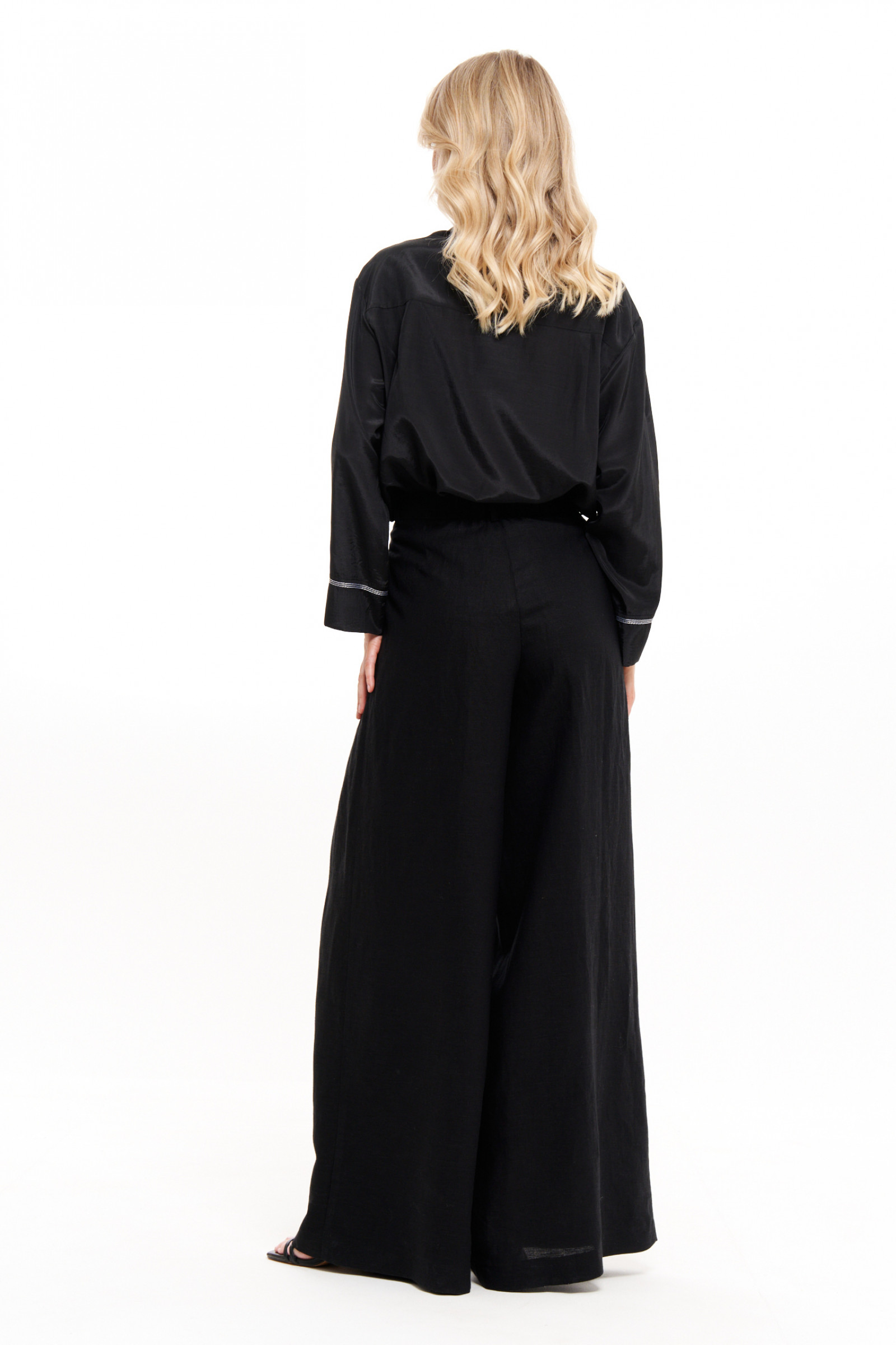 Брюки женские из льняной ткани – идеальный выбор для теплого времени года. Легкость и натуральность материала обеспечивают комфорт даже в жаркие дни, а классический прямой крой придает элегантность и делает эти брюки базовым элементом гардероба. Свободная посадка и продуманный фасон делают их универсальными: носите их в офис, создавая деловой образ, или сочетайте с легкими блузами для повседневного нарядного стиля.