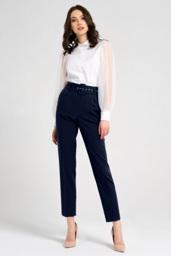 46 Брюки: Высота посадки - 32см, Длина брюк без пояса - 100.5см, Длина по внутреннему шву - 76.5см, Ширина брючин сверху - 66см, Обхват брюк по низу - 34см, Ширина по бедрам - 49.5см, Ширина по талии - 36.5см;