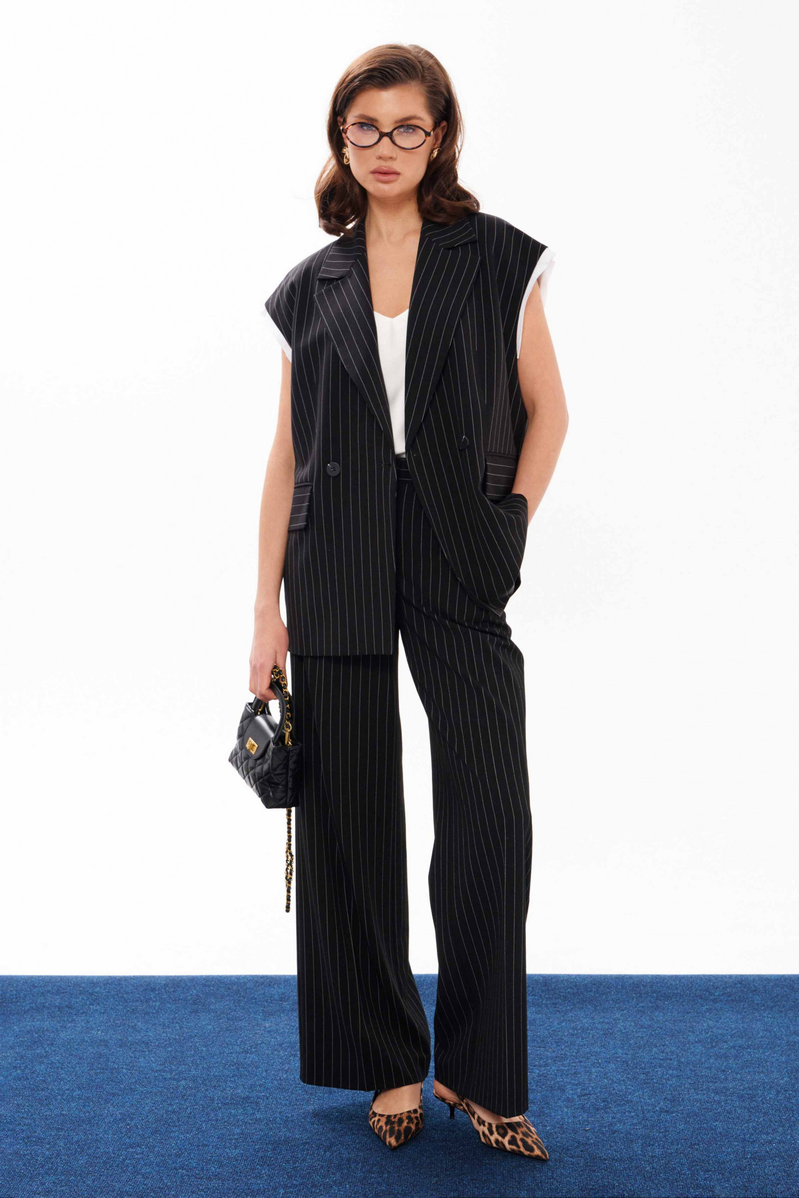 48 Брюки: Высота посадки - 28см, Длина брюк без пояса - 106см, Длина по внутреннему шву - 81.5см, Ширина брючин сверху - 72см, Обхват брюк по низу - 64.5см, Ширина по бедрам - 54см, Ширина по талии - 41см;
