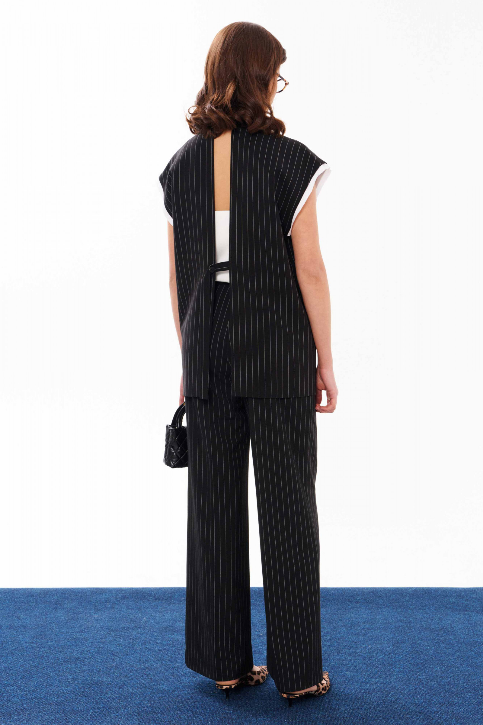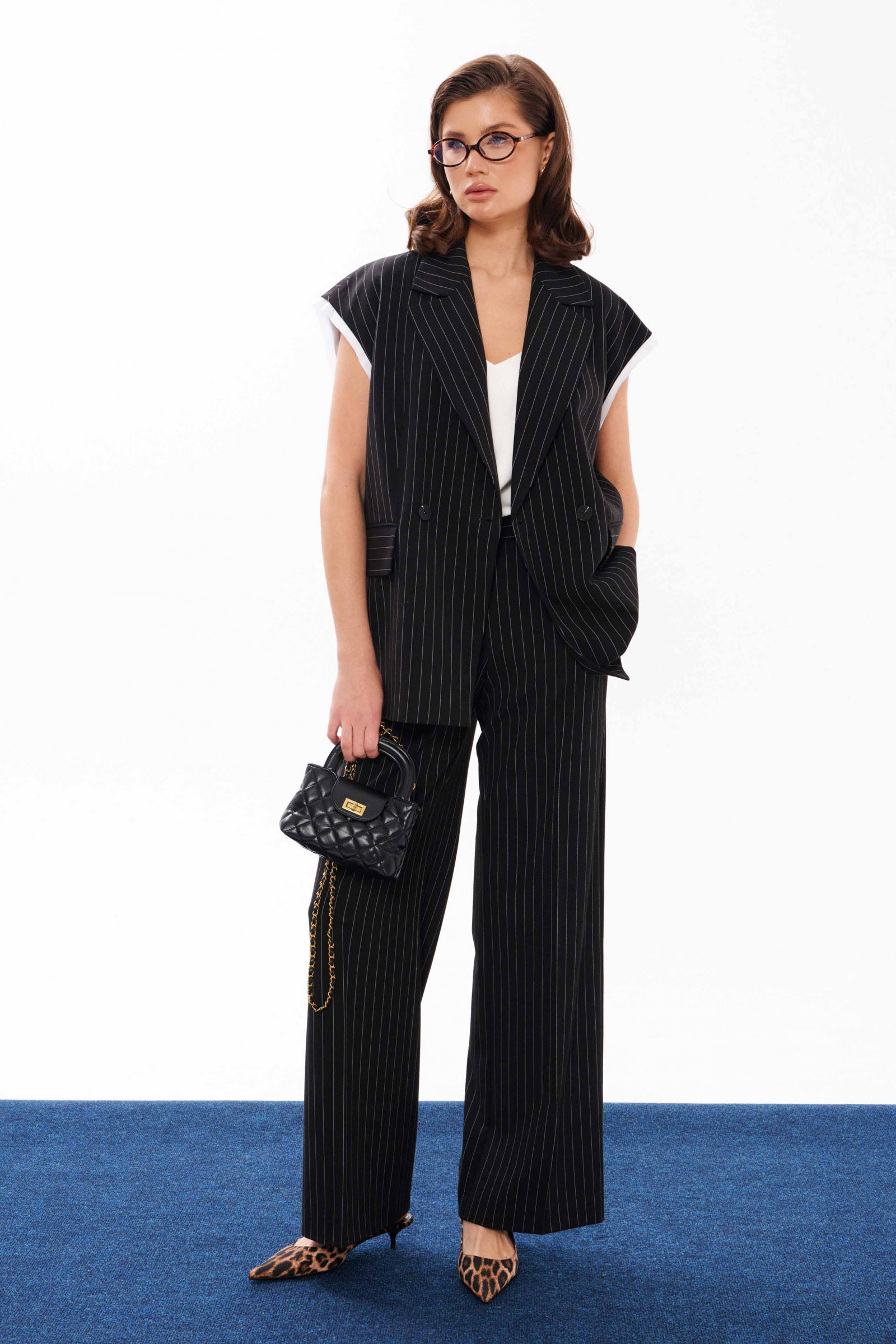 46 Брюки: Высота посадки - 27.5см, Длина брюк без пояса - 105.5см, Длина по внутреннему шву - 81.5см, Ширина брючин сверху - 69.5см, Обхват брюк по низу - 63см, Ширина по бедрам - 52см, Ширина по талии - 39см;