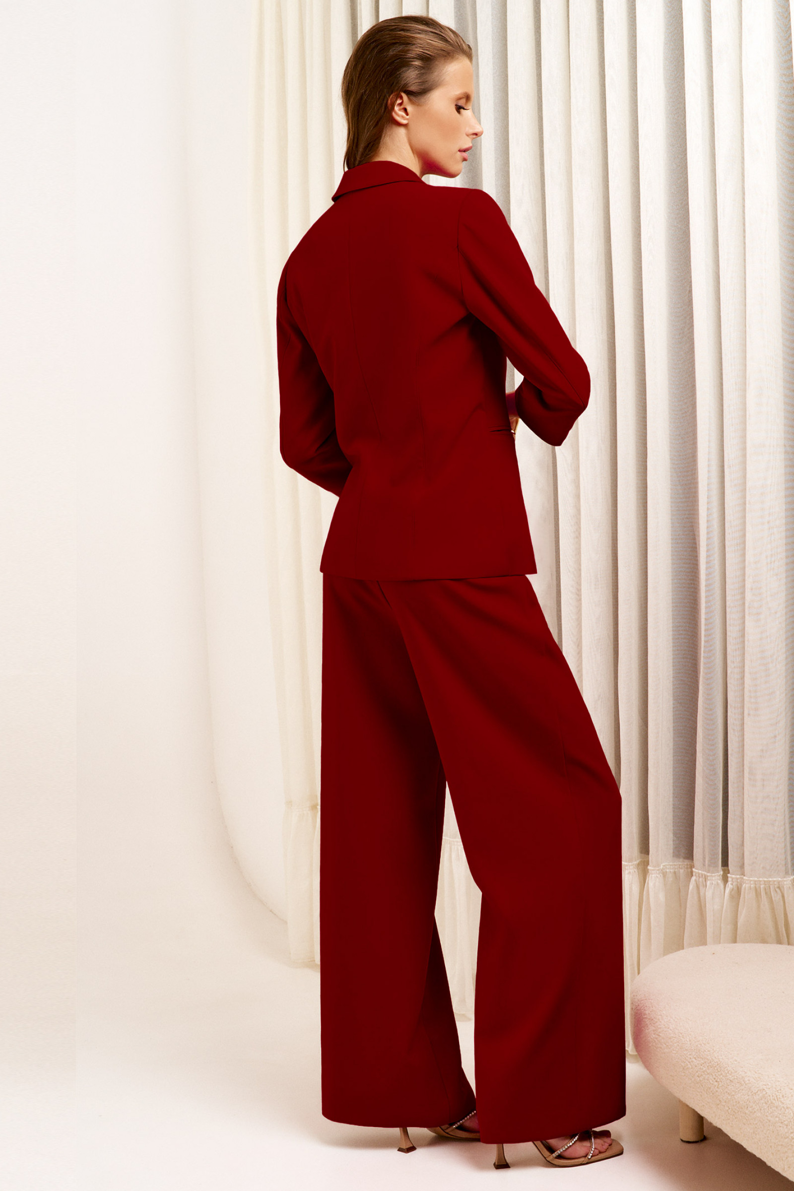 46 Брюки: Высота посадки - 24см, Длина брюк с поясом - 111см, Длина по шаговому шву - 81.5см, Ширина брючин сверху - 69см, Обхват брюк по низу - 61см, Ширина по бедрам - 53см, Ширина по талии - 36см;