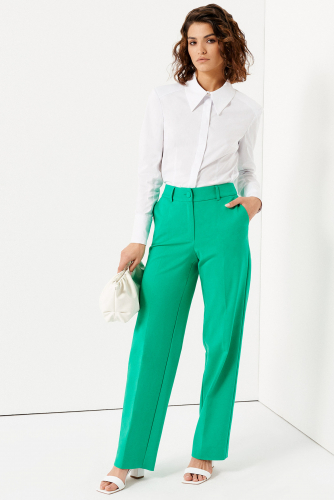 Классические брюки женские – универсальны, вы сможете носить их в офис, на встречи с друзьями, прогулки по городу, учебу. Они представляют собой безупречные сочетания с блузками, майками, топами, легкими джемперами, обувью на каблуке и плоской подошве. Модные женские брюки с высокой посадкой отлично смотрятся на любой фигуре. Длина штанин традиционная. Они не облегают ноги, скрывая их несовершенства. Пояс дополнен шлевками для ремня и петлей-пуговицей. Гульфик делает незаметной застежку-молнию. Изделие сшито из воздухопроницаемого хлопкового трикотажа. Если вы хотите пополнить свой гардероб универсальной вещью, то можете заказать летние брюки женские в размерах 42-50