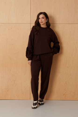 56 Брюки: Высота посадки - 29см, Длина брюк без пояса - 101см, Длина по шаговому шву - 76см, Ширина брючин сверху - 60см, Обхват брюк по низу - 28.5см, Ширина по бедрам - 53см, Ширина по талии - 43см;