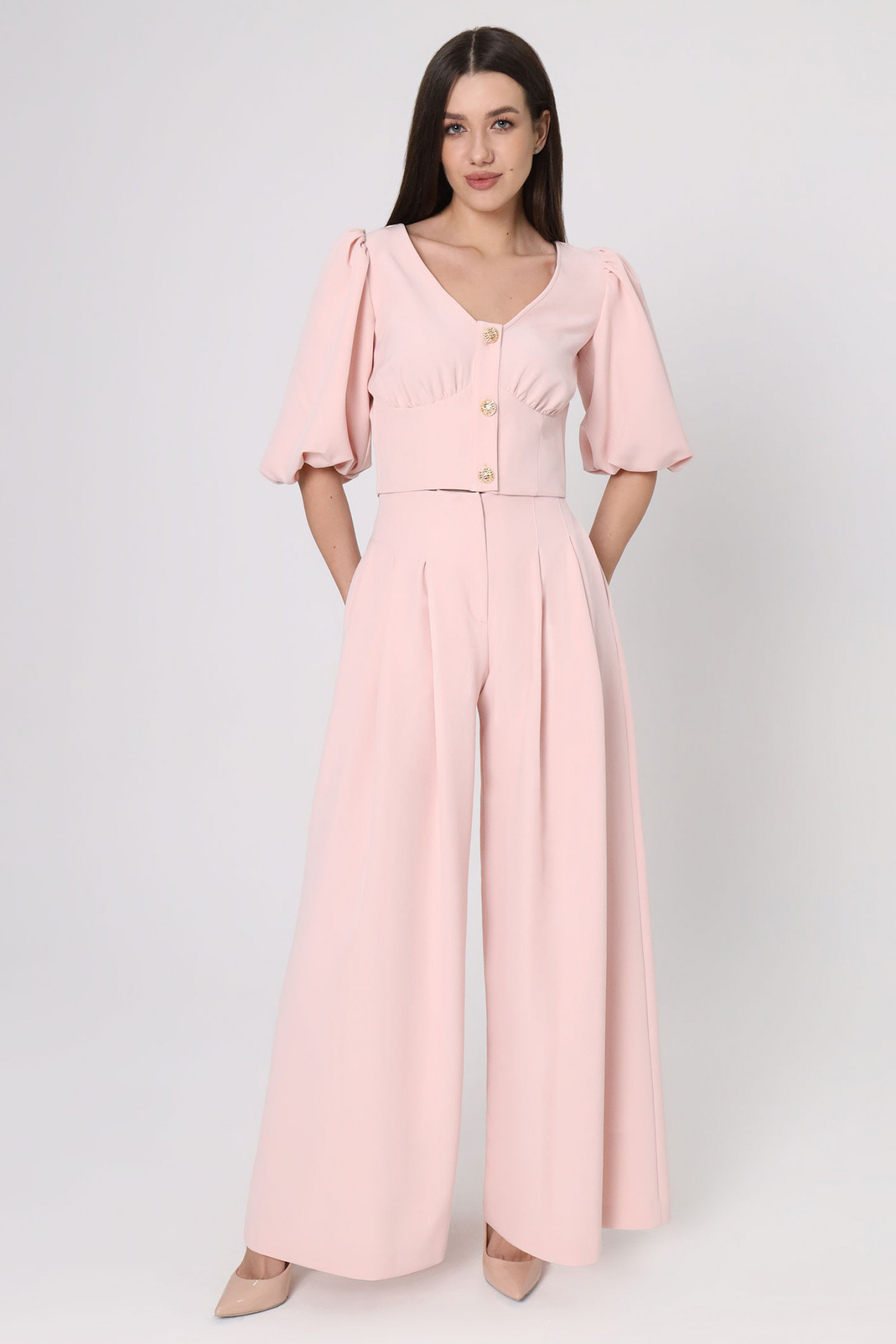 48 Брюки: Высота посадки - 31см, Длина брюк - 110.5см, Длина по внутреннему шву - 81см, Ширина брючин сверху - 110см, Обхват брюк по низу - 117см, Ширина по бедрам - 55см, Ширина по талии - 39.5см;