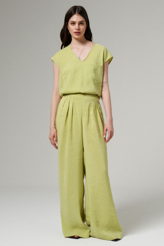56 Брюки: Высота посадки - 31см, Длина брюк без пояса - 100см, Длина по внутреннему шву - 75см, Ширина брючин сверху - 72см, Обхват брюк по низу - 36.5см, Ширина по бедрам - 61см, Ширина по талии - 46см;