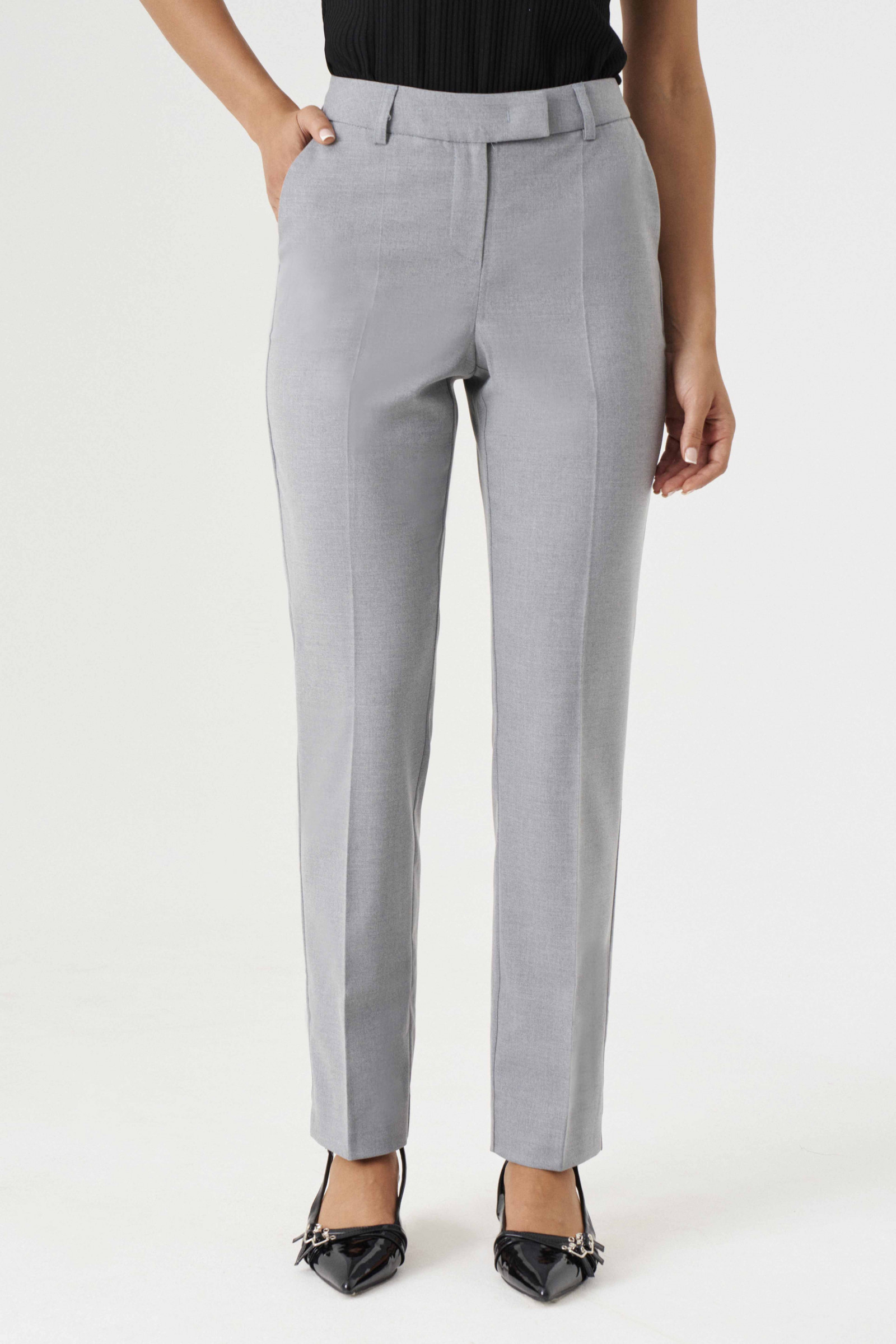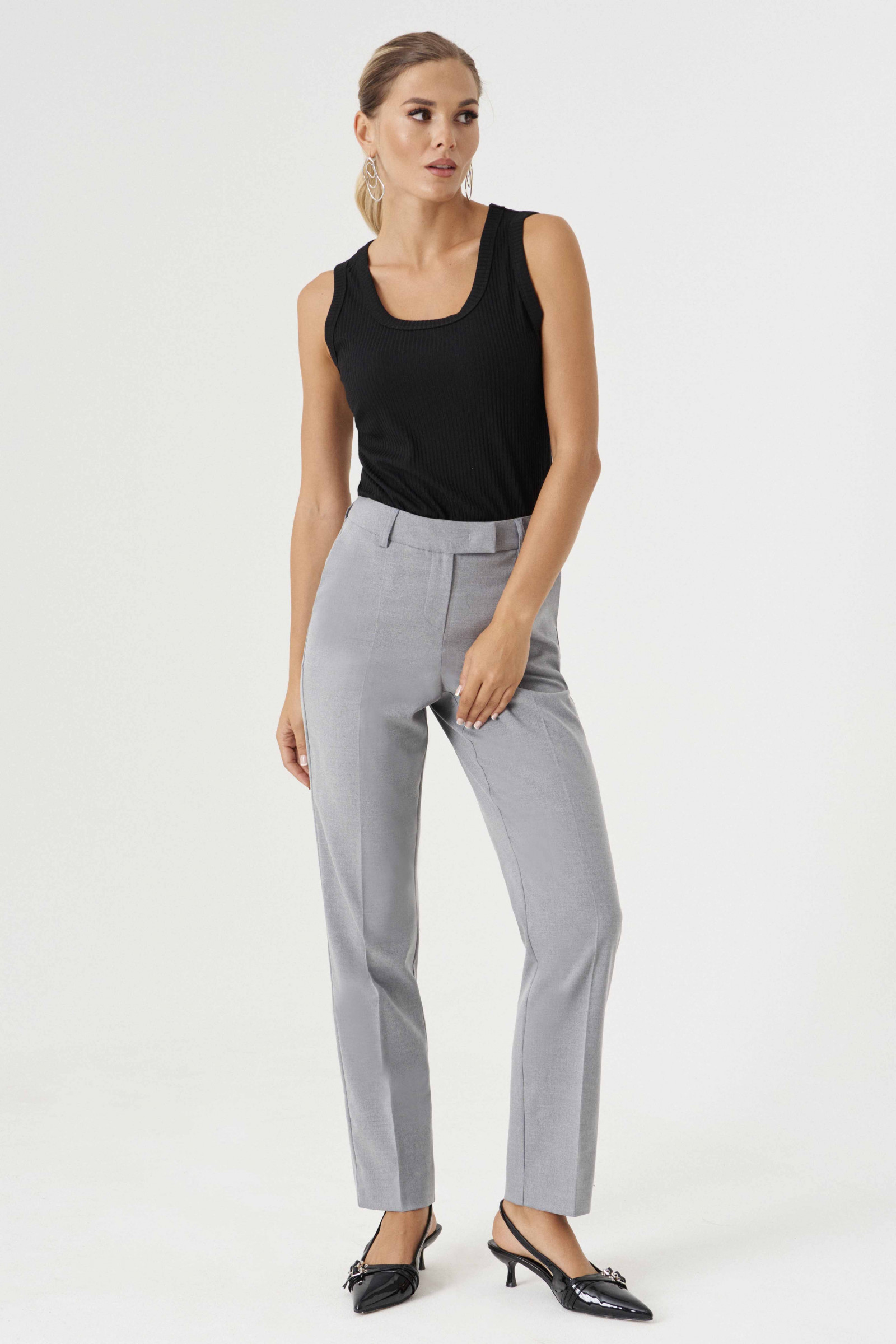 Красивые элегантные брюки из ткани с добавлением вискозы с высокой талией, боковыми карманами - тренд этого сезона. Сбоку брючин выполнены разрезы. Свободные и прямые вверху, более узкие внизу. Стильные брюки подойдут для женщин высокого роста или для любительниц высоких шпилек. Прямые брюки со стрелкой делают образ элегантным, вытягивают силуэт, визуально удлиняют ноги. Брюки женские подойдут для вечерних образов, в офис, на работу, на свидание, на прогулку.