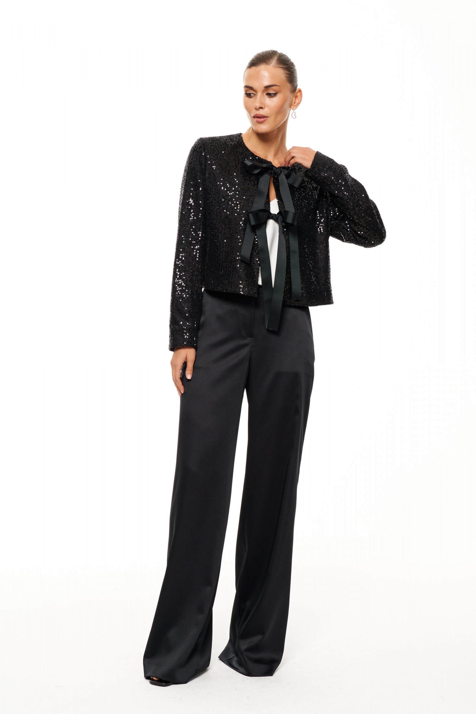 44 Брюки: Высота посадки - 28см, Длина брюк с поясом - 116см, Длина по внутреннему шву - 87см, Ширина брючин сверху - 64см, Обхват брюк по низу - 59см, Ширина по бедрам - 49см, Ширина по талии - 36см;