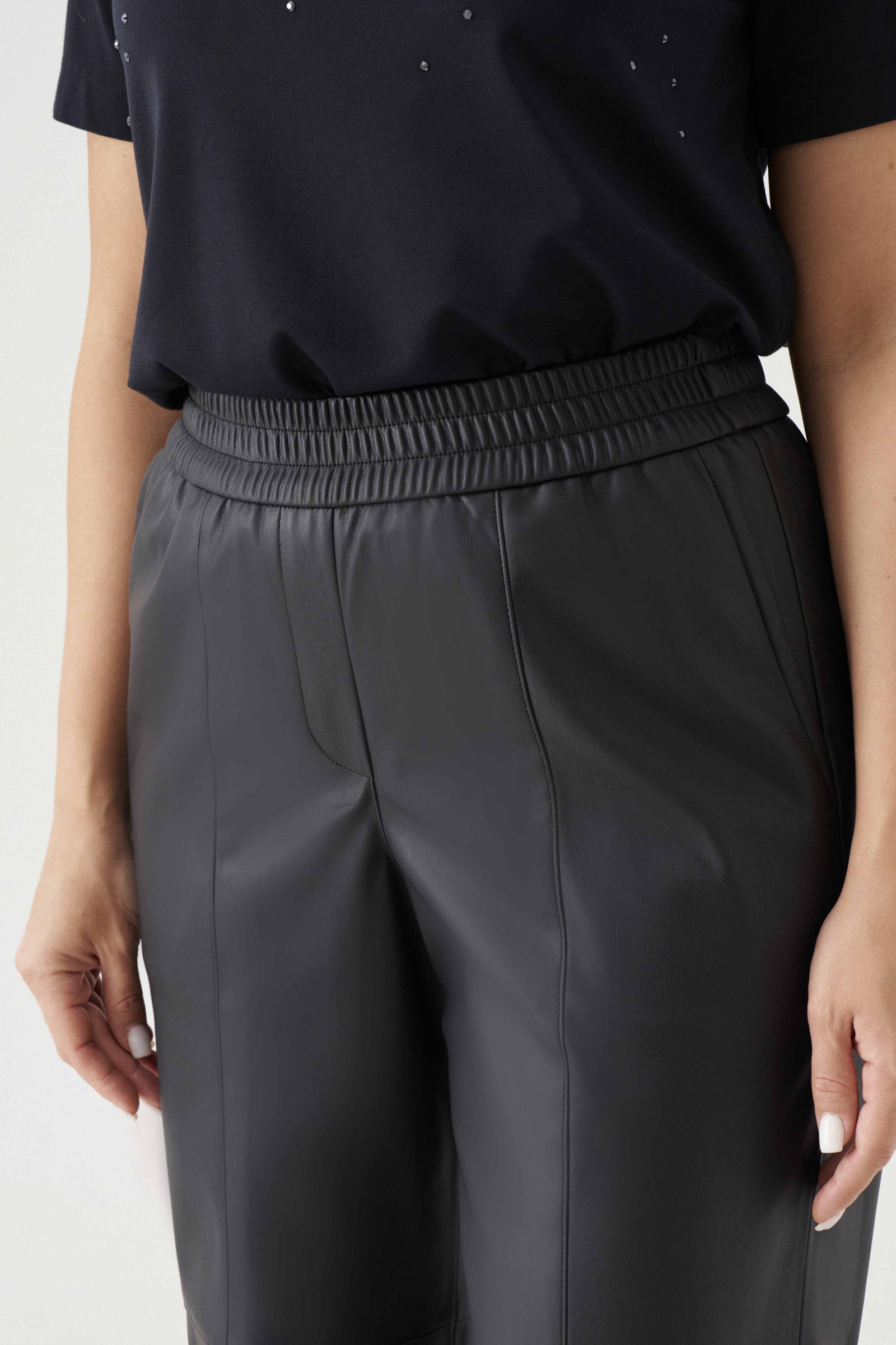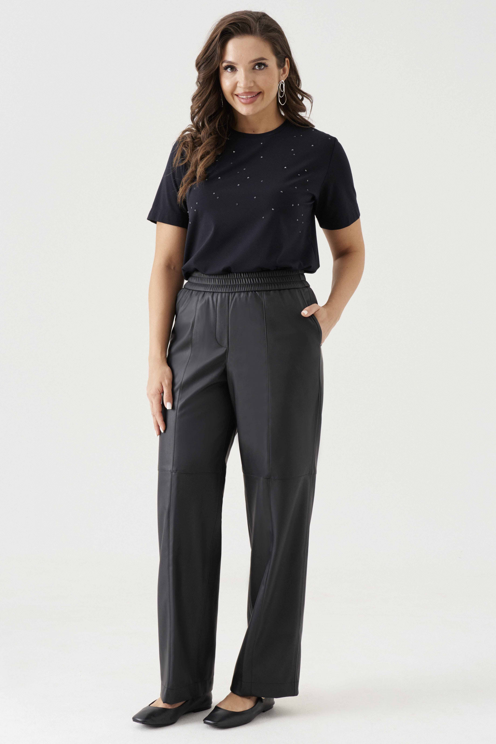 Брюки женские из экокожи прямого силуэта для повседневной носки. Верхний срез брюк обработан притачным поясом на резинке. В брюках имеется боковой прорезной карман в шве. Длина изделия классическая. Данное изделие станет вашим фаворитом среди брюк. Брюки очень удобные и стильные.