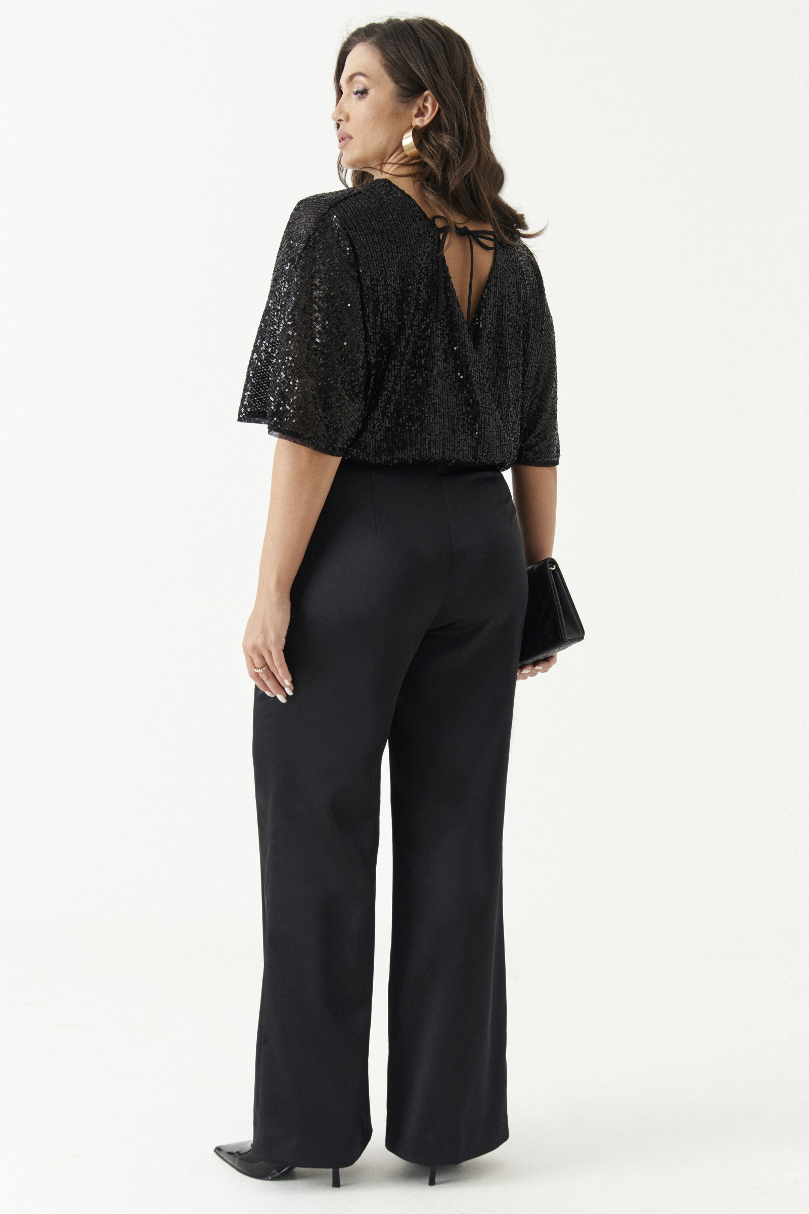 Брюки женские из смесовой ткани для торжественных случаев. В брюках имеется боковой прорезной карман в шве с подкройным бочком, а также две талиевые вытачки на передней части брюк. По задней части брюк имеются две талиевые вытачки. Данные брюки подойдут для торжественных случаев.