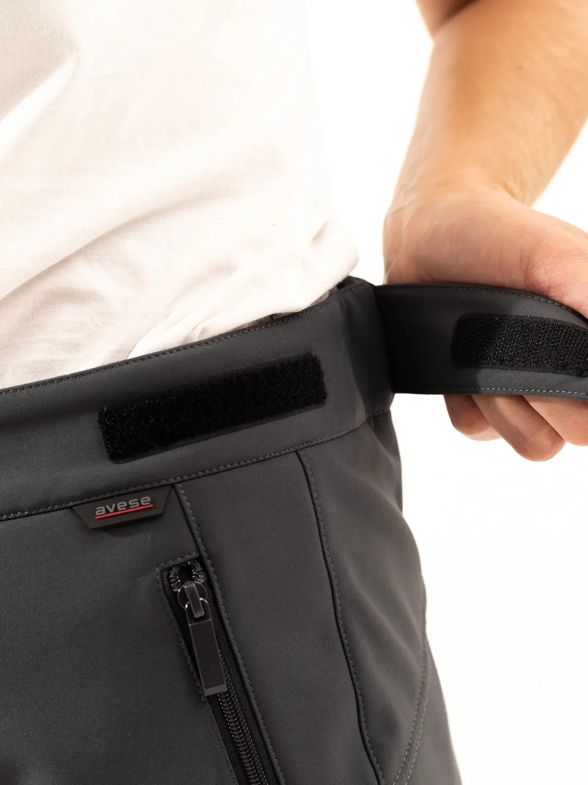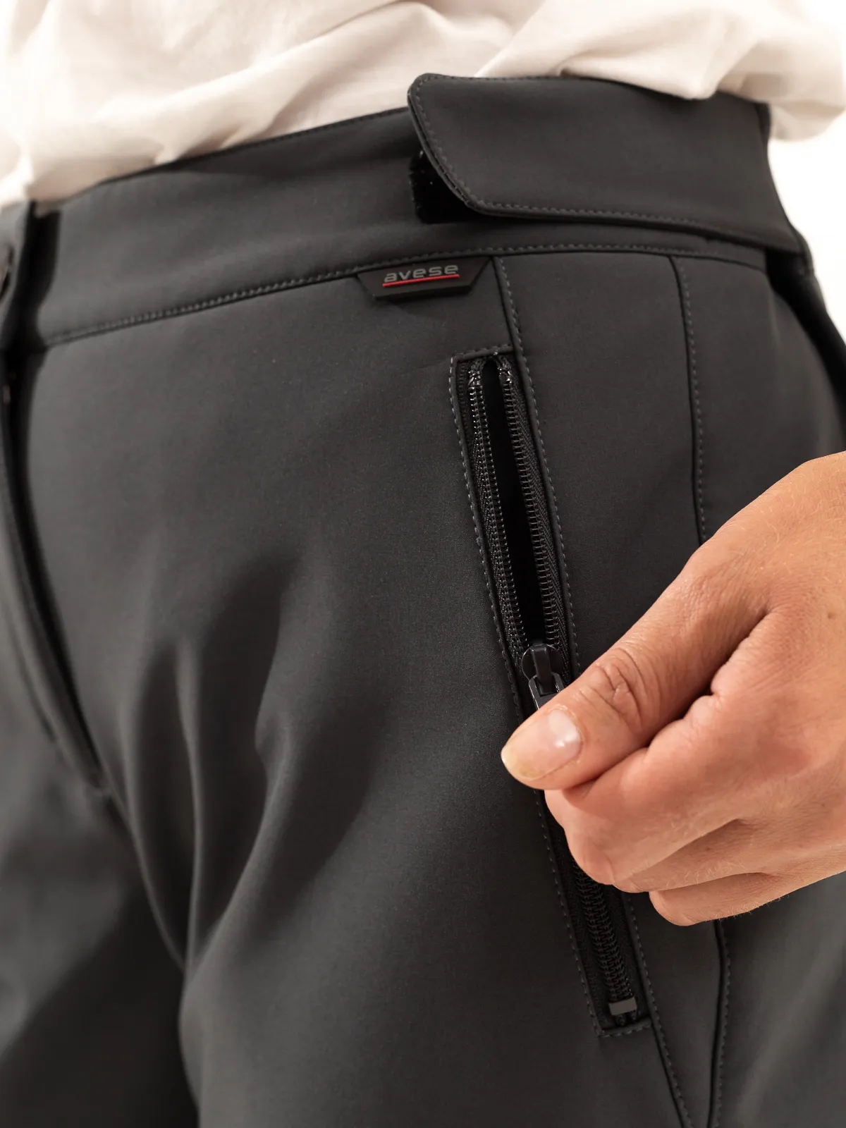 Женские брюки из софтшелла, с гульфиком на молнии. Пояс брюк с патами на липучке для регклировки прилегания, застегивается на пуговицу. 2 прорезных верхних  кармана с молниями. Низ брюк прямой. Посадка брюк облегающая, для классической посадки рекомендуем брать на размер больше. Рассчитаны на температуру от +5 до +15.