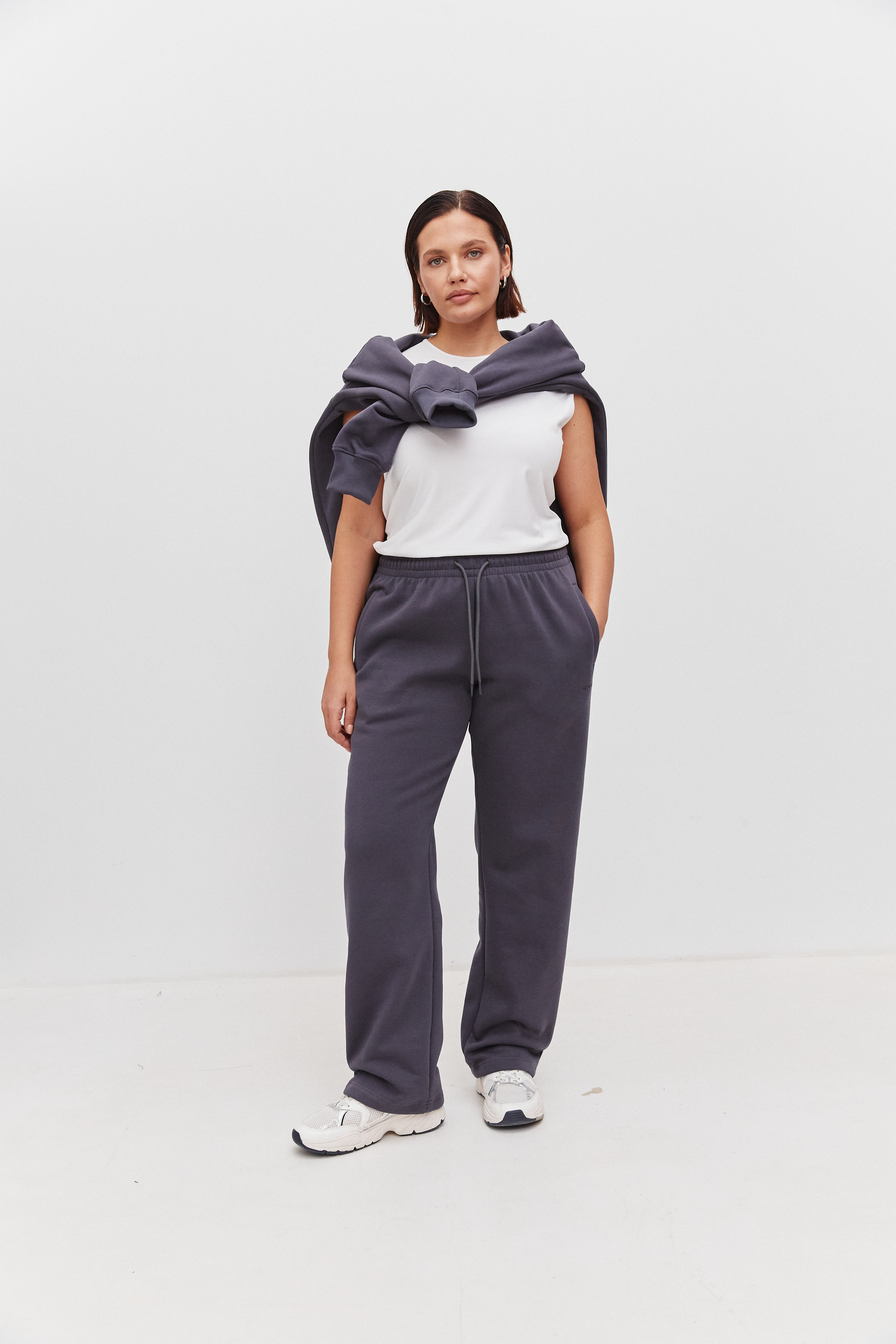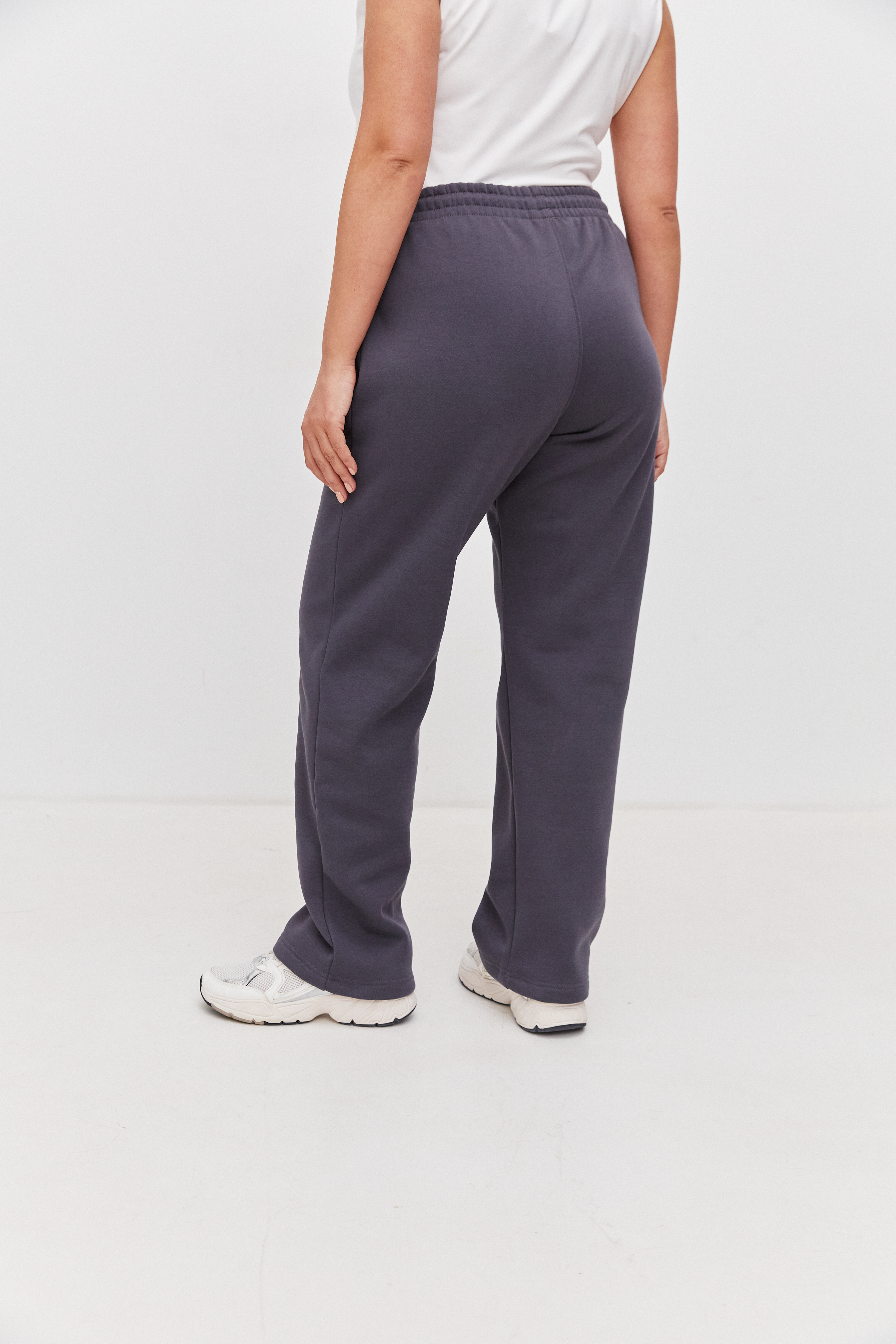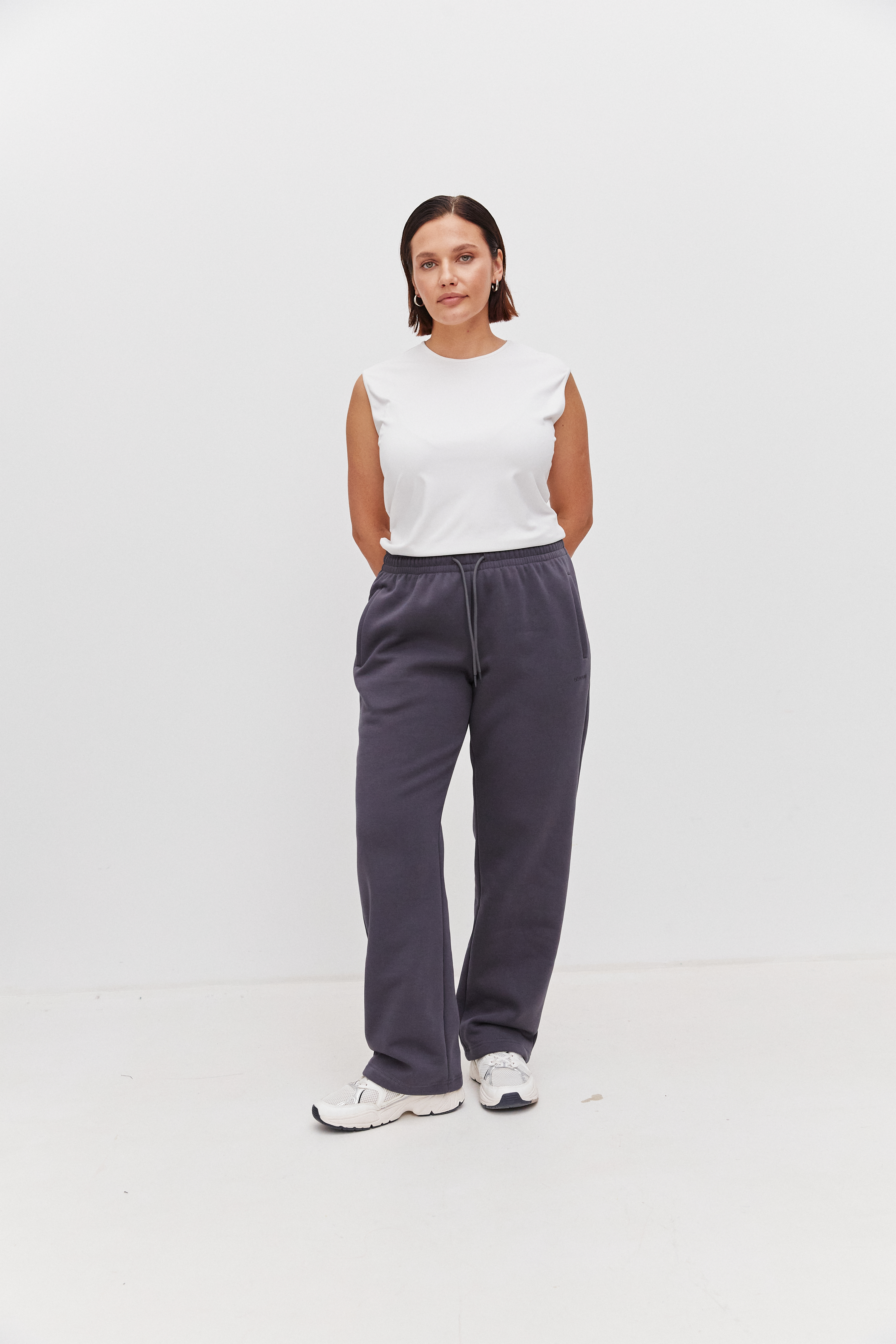 Женские прямые брюки с поясом на резинке и шнурке. Брюки из трикотажного полотна - футер с начесом. 2 кармана с листочками. 95% хлопок, 5% эластан