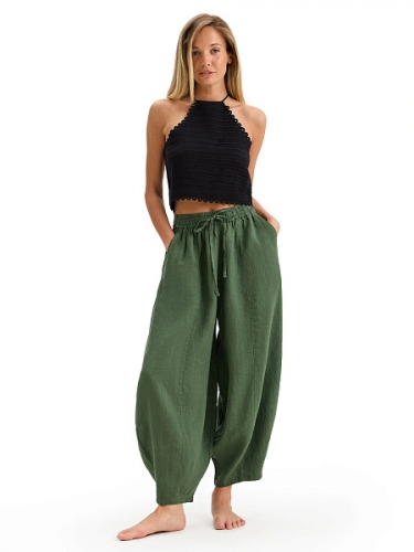 Женские однотонные льняные брюки серии LINEN – безупречное сочетание комфорта и стиля. Модель объемного, слегка мешковатого фасона с широкими, сужающимися книзу штанинами, на вшитом поясе-резинке со шнурком, с боковыми карманами, декорированными брендированной вышивкой, обеспечивает максимальную свободу движений. Легкие брюки держат форму при ходьбе, придавая силуэту женственность и грациозность. Хорошо садятся по фигуре вне зависимости от телосложения женщины – посадку можно регулировать по своему вкусу, носить на талии или чуть ниже. Естественная мятость подчеркивает аутентичность изделия и утонченный вкус. Эта модель станет незаменимой частью летнего гардероба, добавит шарма и элегантности повседневным образам, куда бы вы ни отправлялись: на работу в офис, на прогулку или городской шопинг, в путешествие или на пляж. Для создания стильного и функционального сета рекомендуем дополнить брюки рубашкой из этой же серии – получится универсальный костюм на все случаи жизни. Коллекция представлена 7 вариантами самых популярных расцветок.