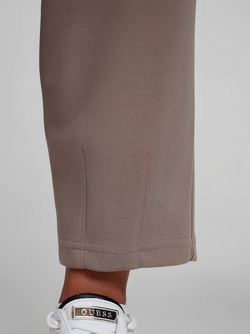 Брюки – укороченные, на притачном поясе с эластичной тесьмой внутри и карманами в боковых швах. На нижних частях передних половин застрочено по две вертикальных складочки-защипа.