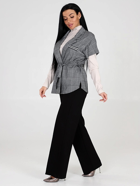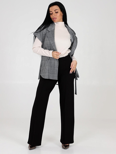 Брюки женские Джинет выполнены в классическом стиле, черного цвета, с высокой талией и широкими штанинами. Они выглядят элегантно и подойдут как для делового, так и для повседневного образа.