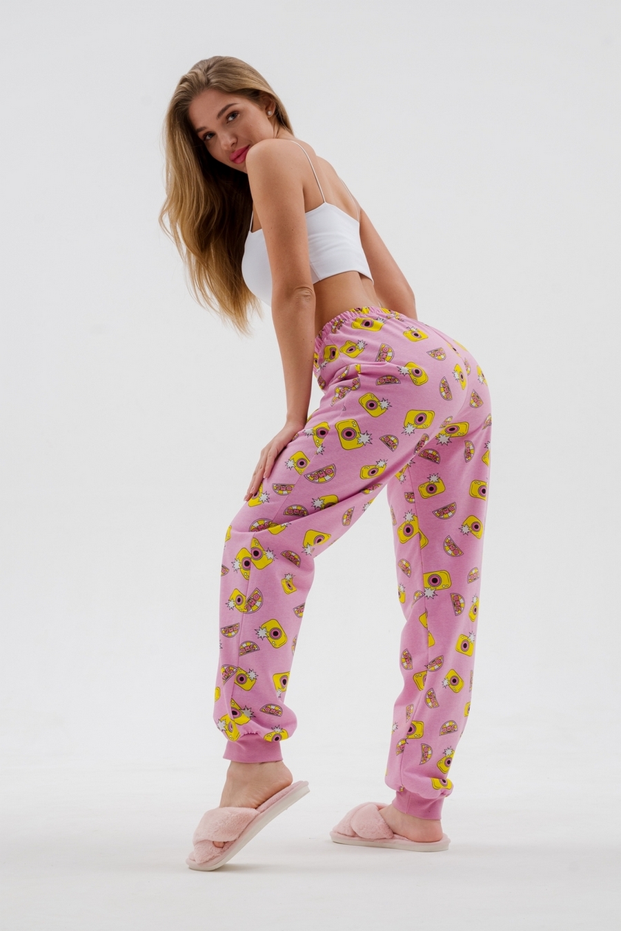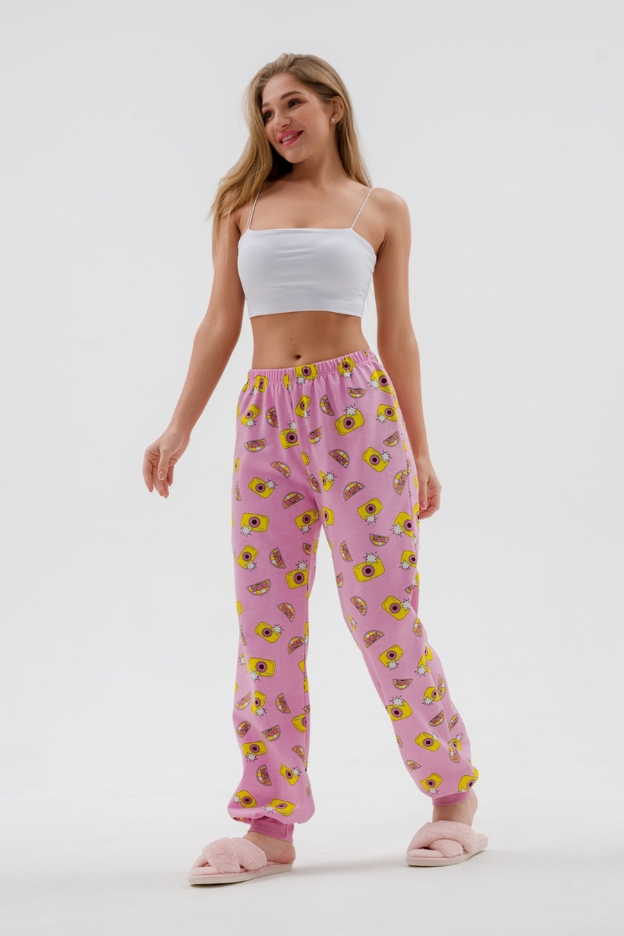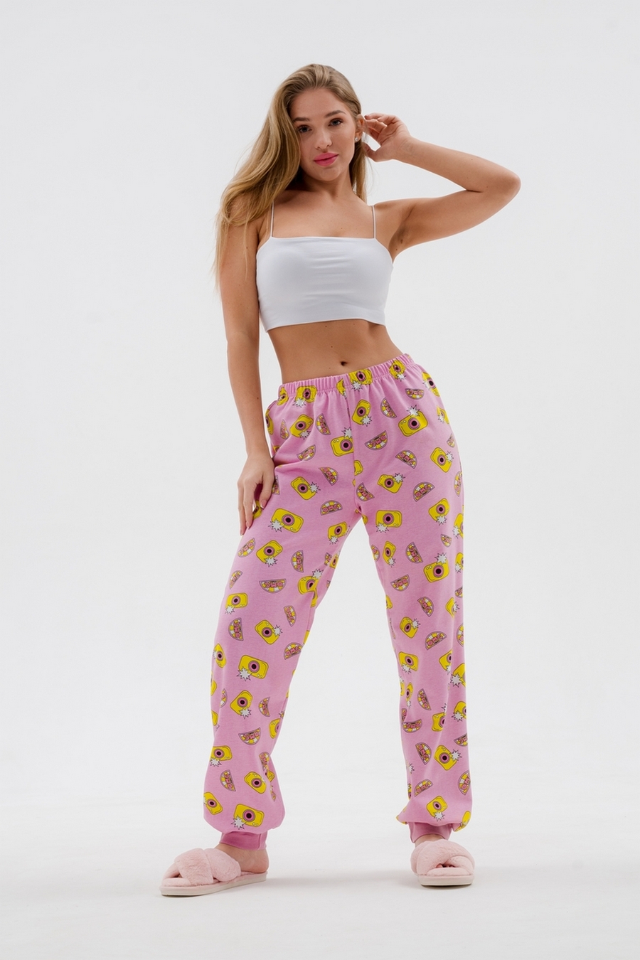 Брюки женские из футера на манжете розовый