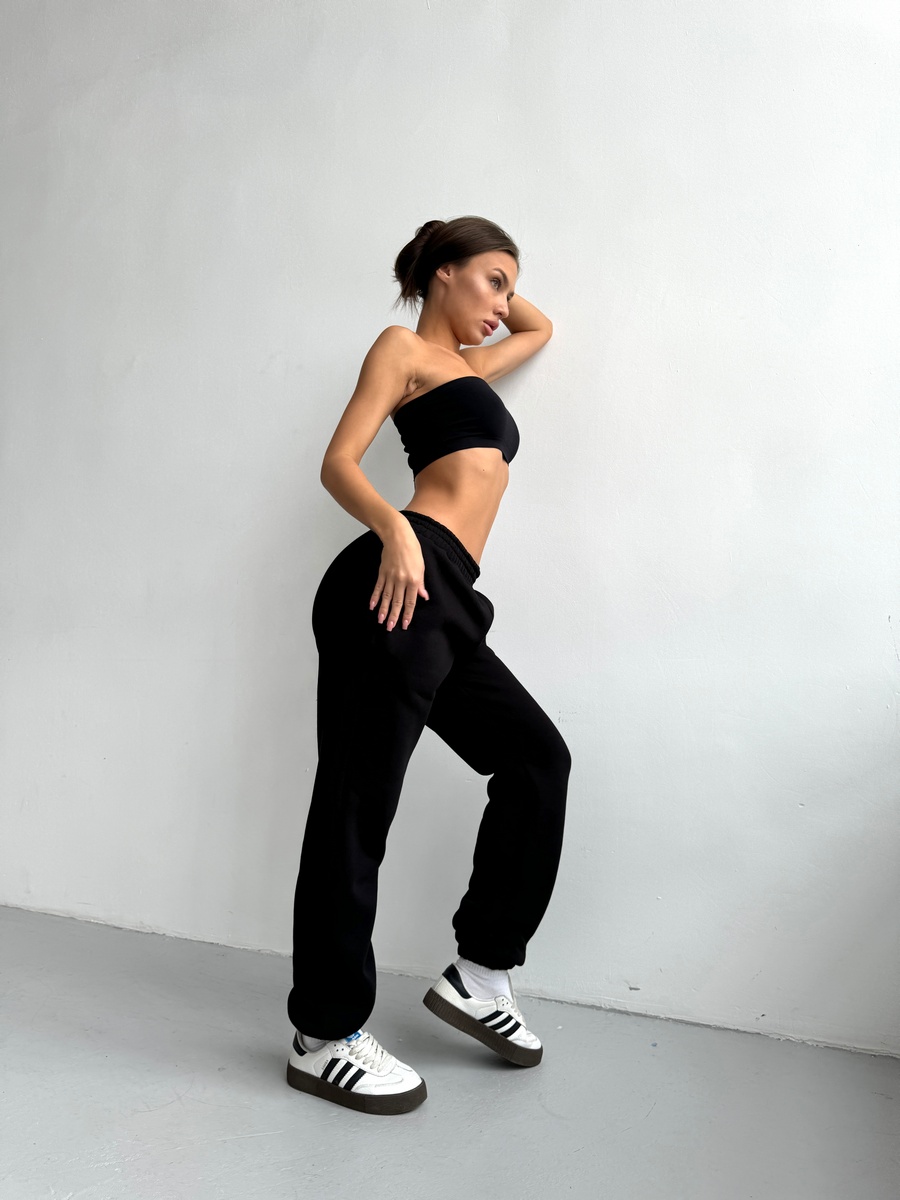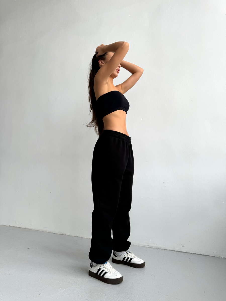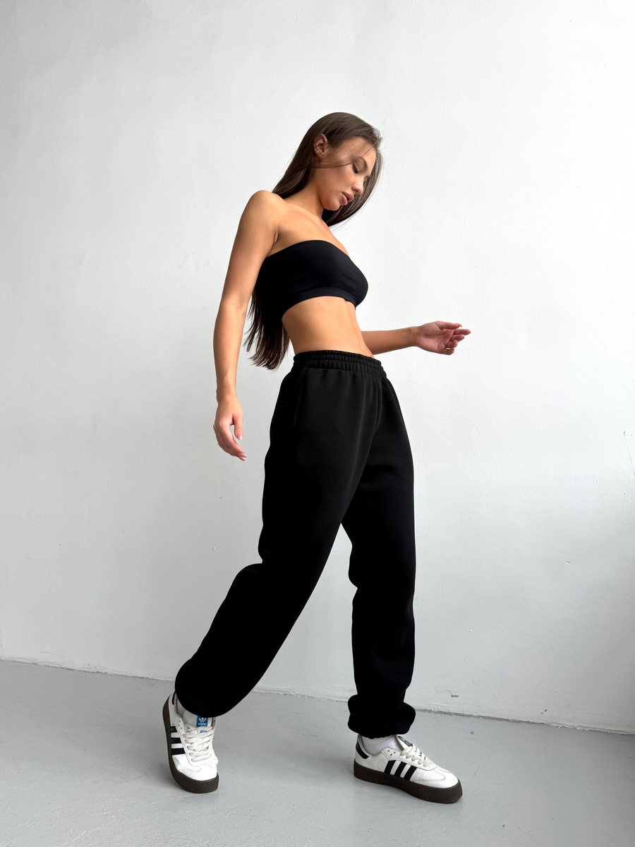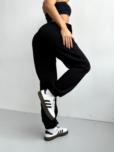 Брюки женские из футера трехнитка с начесом Сова черный макси