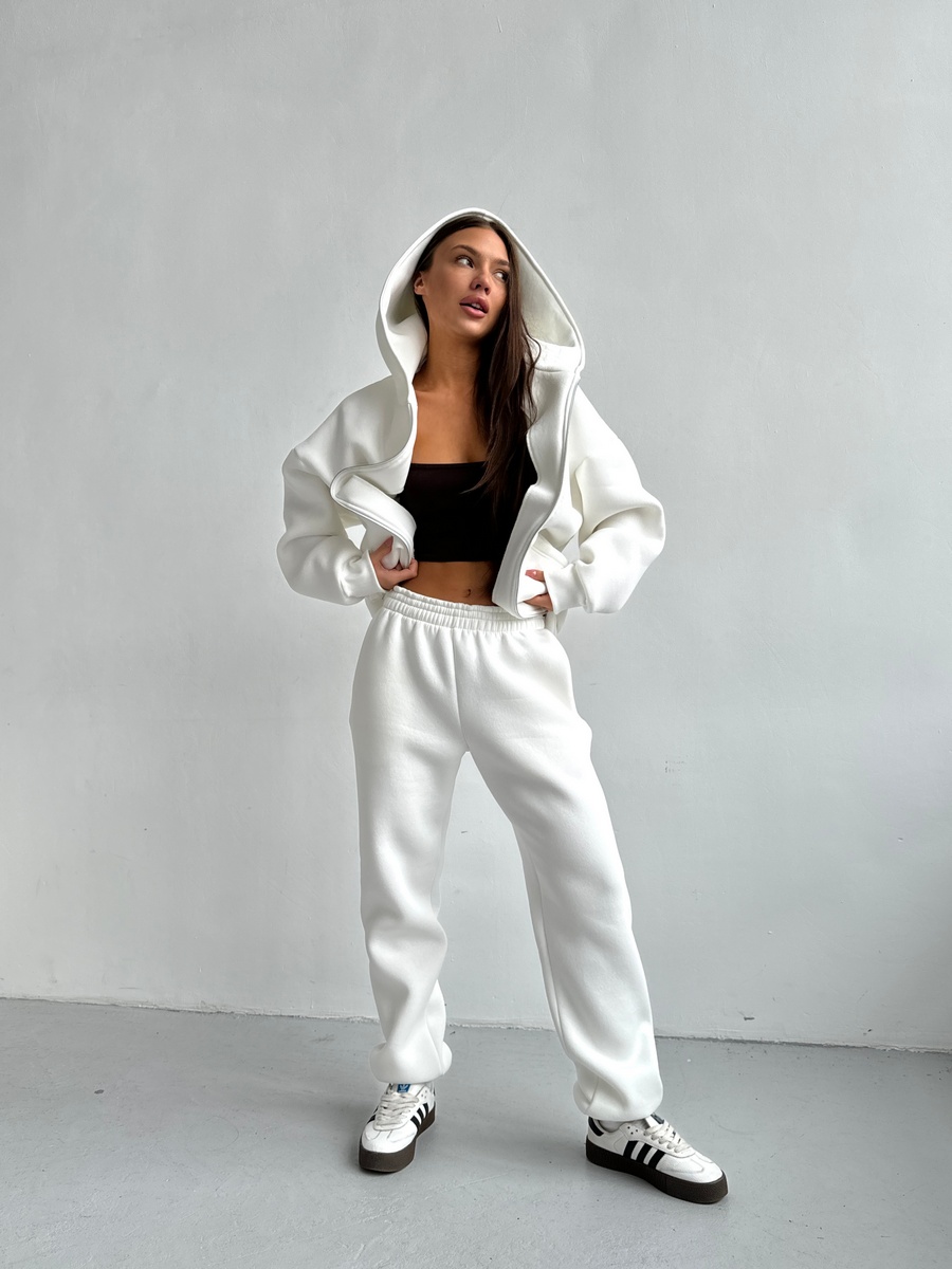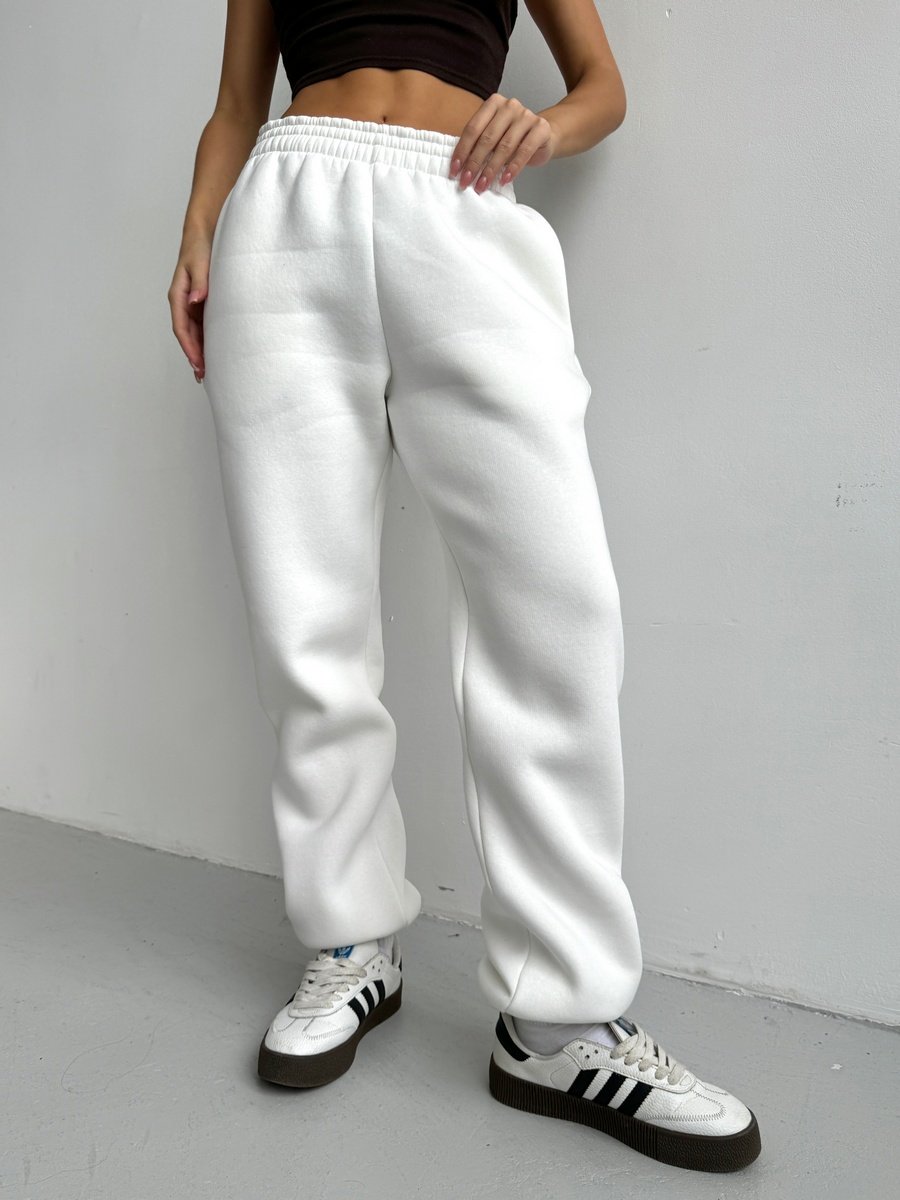 Брюки женские из футера трехнитка с начесом Сова экрю