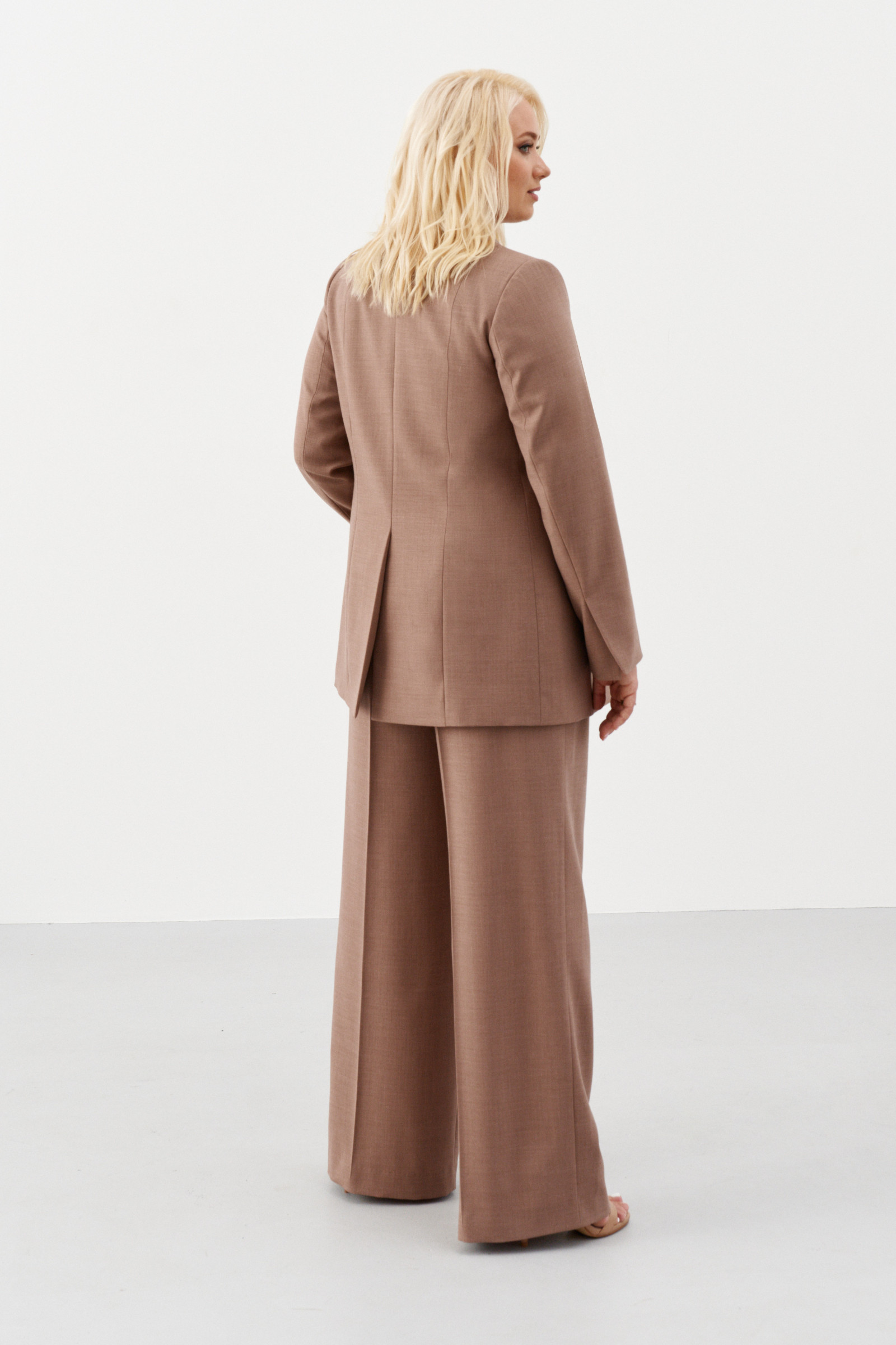 46 Брюки: Высота посадки - 30см, Длина брюк без пояса - 108.5см, Длина по внутреннему шву - 82.5см, Ширина брючин сверху - 70.5см, Обхват брюк по низу - 54см, Ширина по бедрам - 51см, Ширина по талии - 36см;