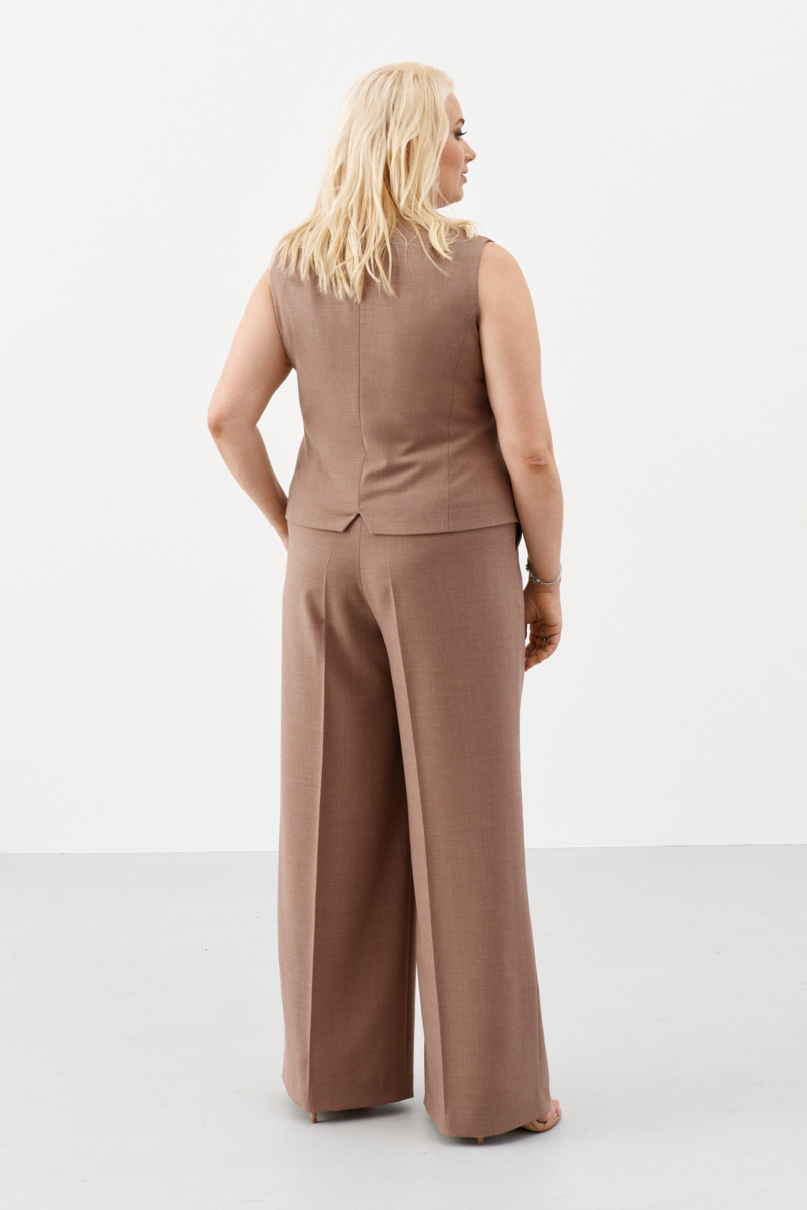 54 Брюки: Высота посадки - 32см, Длина брюк без пояса - 109.5см, Длина по внутреннему шву - 82.5см, Ширина брючин сверху - 78.5см, Обхват брюк по низу - 66см, Ширина по бедрам - 59см, Ширина по талии - 46см;