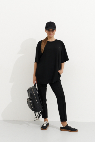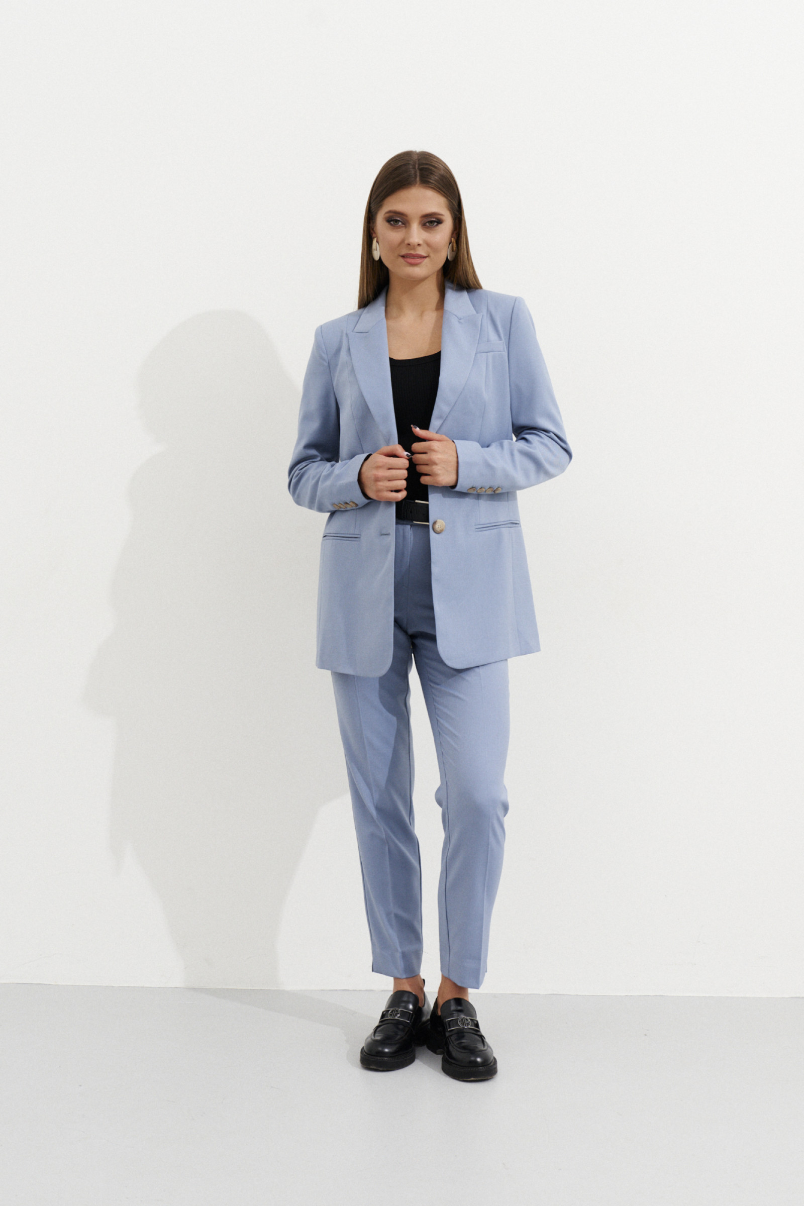 44 Брюки: Высота посадки - 26.5см, Длина брюк без пояса - 98.5см, Длина по внутреннему шву - 75.5см, Ширина брючин сверху - 62см, Обхват брюк по низу - 33см, Ширина по бедрам - 47.5см, Ширина по талии - 34см;