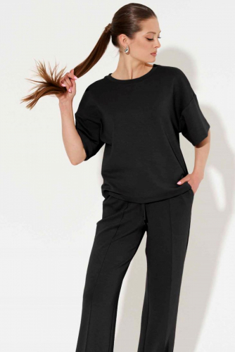 Брюки женские прямые из смесовой ткани для повседневной носки. Верхний срез брюк обработан притачным поясом, застежка на крючок, а также имеется застежка на тесьму-молнию в среднем шве брюк. Задняя часть брюк имеет вытачки, входящие в прорезной карман в рамку с двумя обтачками. В брюках расположен в боковом шве карман с подкройным бочком и с небольшими разрезами к низу изделия. Отличный классический вариант брюк, которые будут гармонично смотреться под любые изделия.