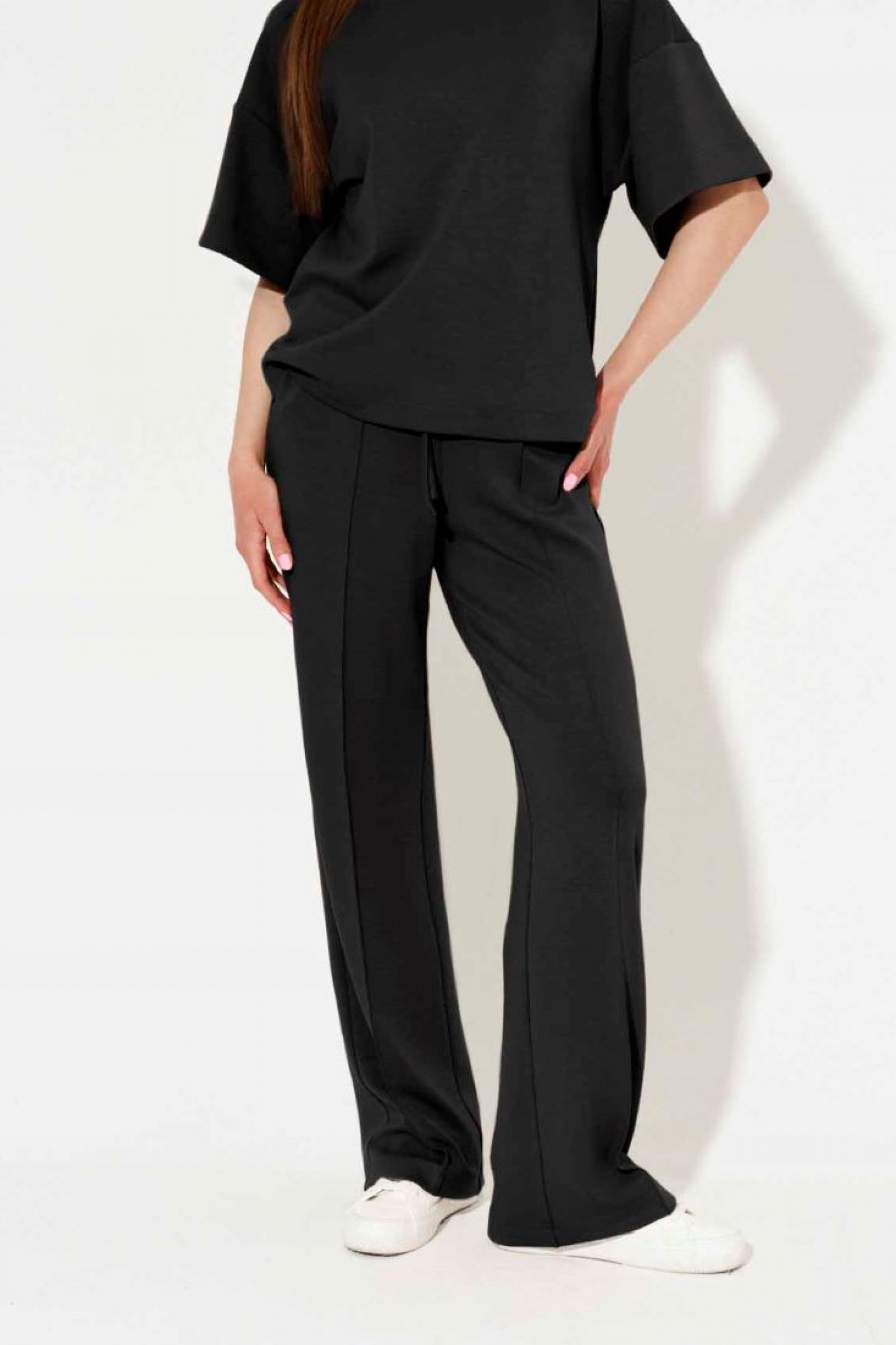 Брюки женские из поливискозной ткани для повседневной носки. Изделие прямого силуэта на поясе. В боковых швах прорезные карманы. Длина брюк классическая.