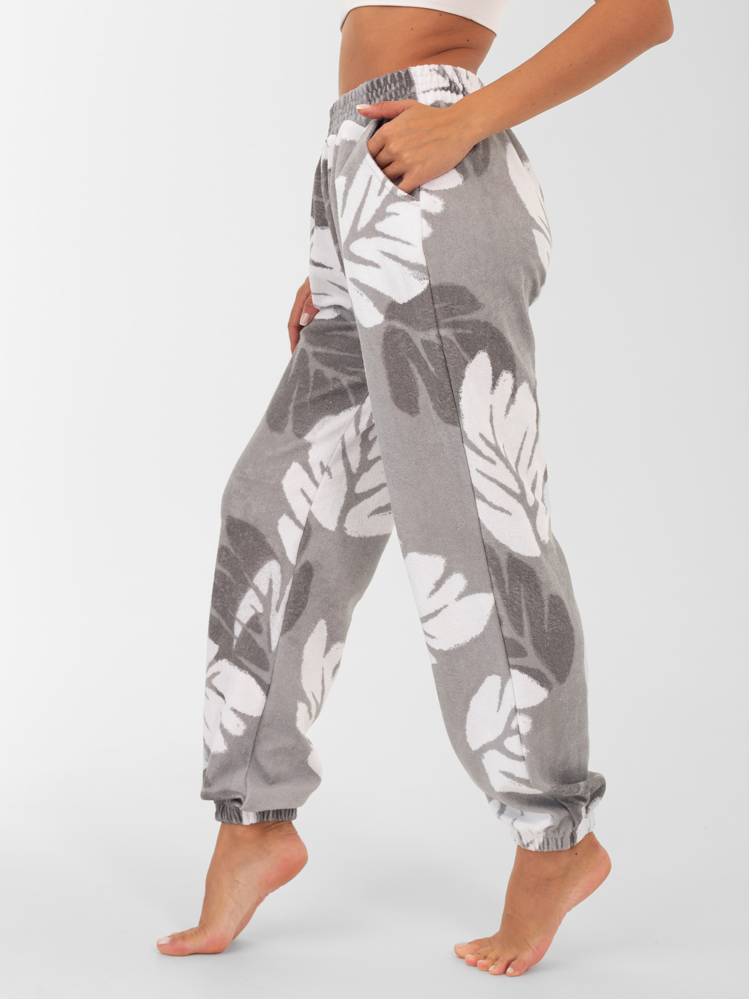 БРЮКИ женские махра СЕРЫЕ ЦВЕТЫ С ДЕФЕКТОМ