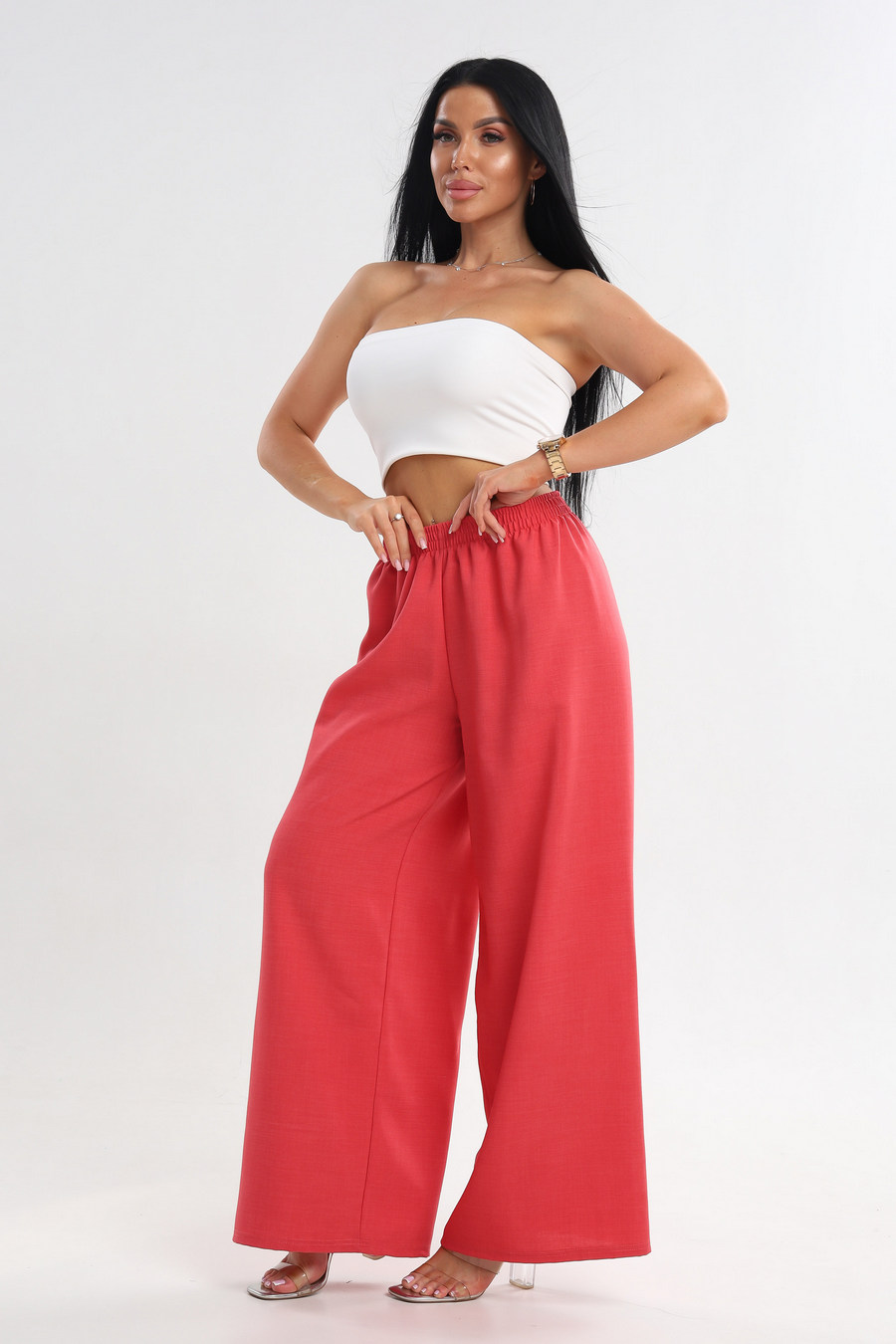 Брюки женские Палаццо из льна тайвань коралловый