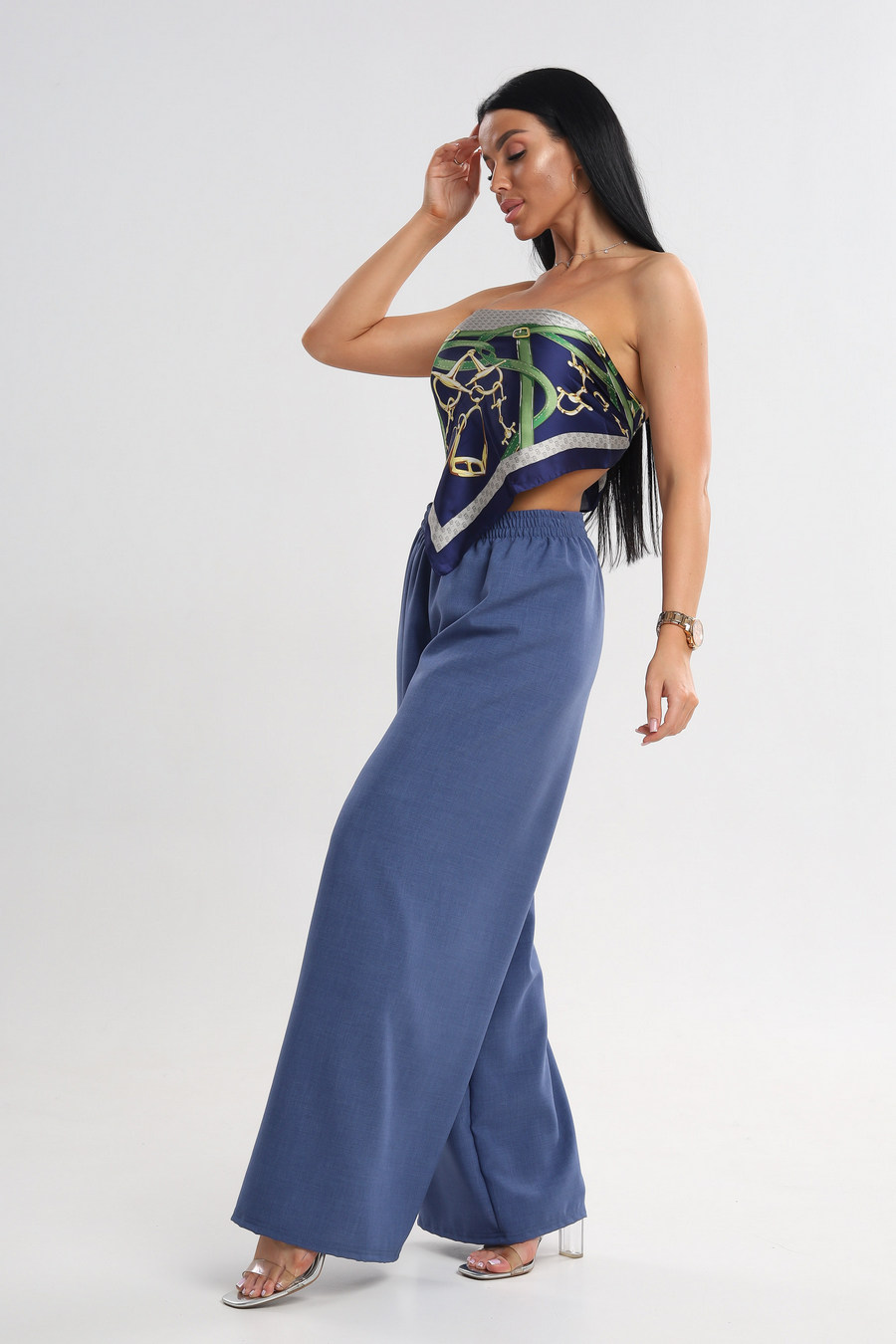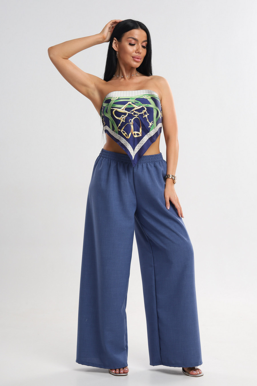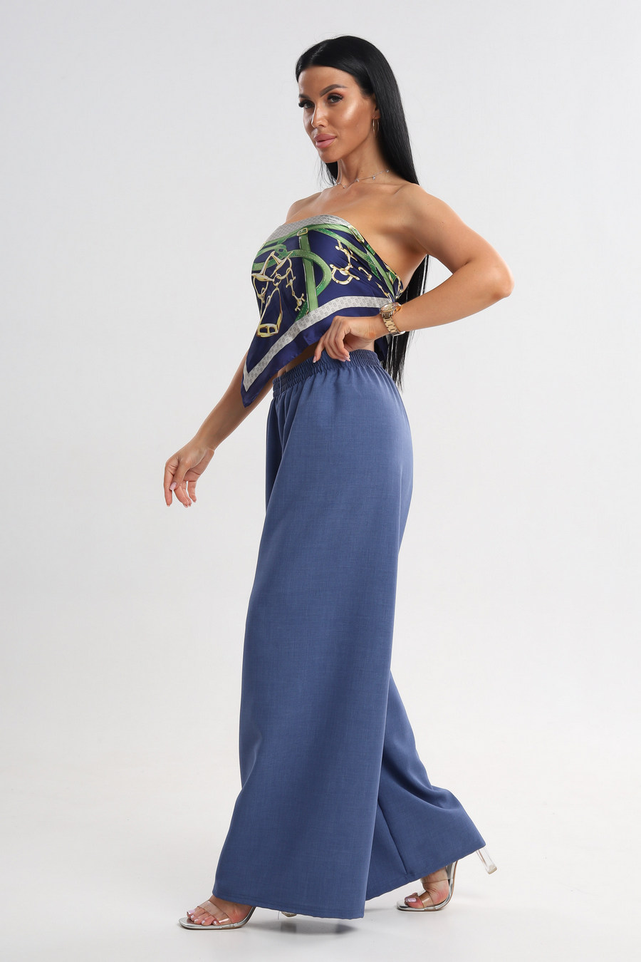 Брюки женские Палаццо из льна тайвань синий