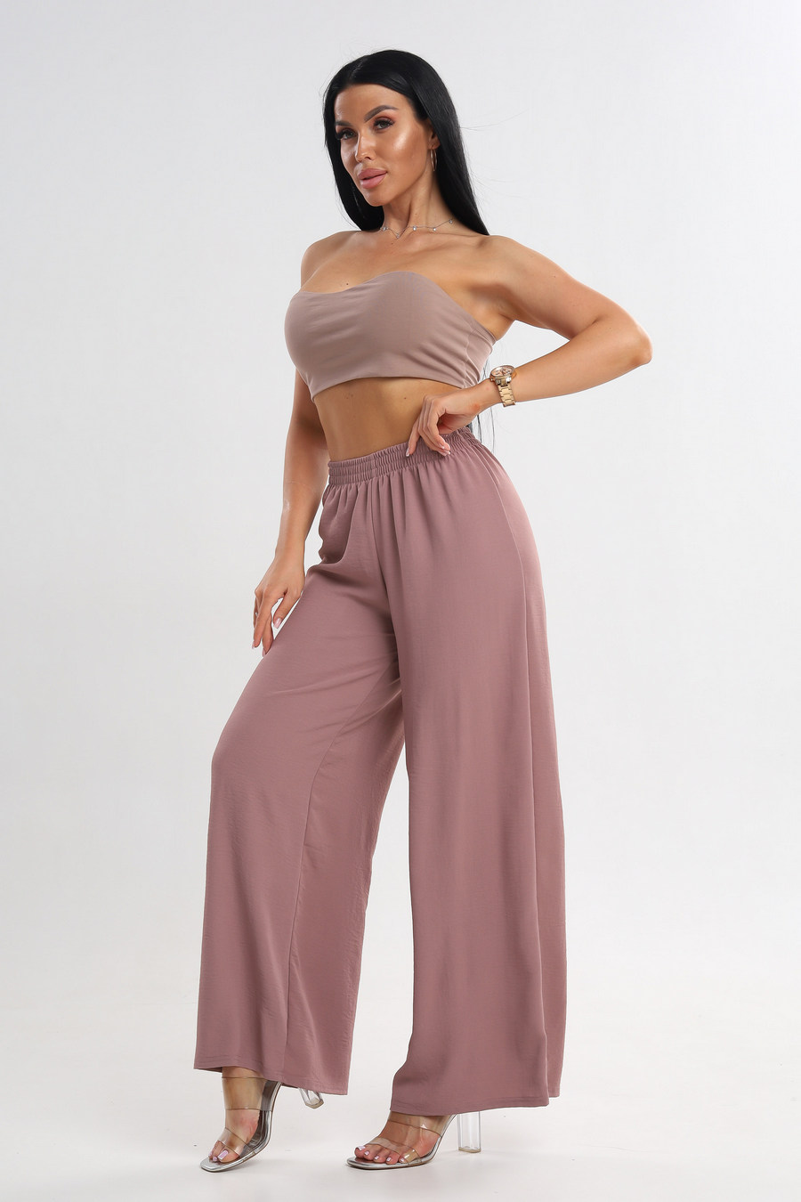 Брюки женские Палаццо из жатки какао