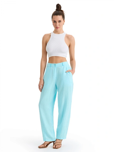 Брюки женские с карманами серии LINEN, цвет тиффани