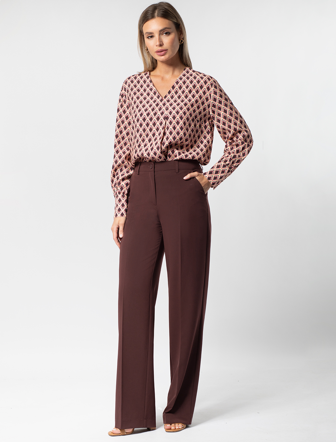 АКЦИЯ!-50%1245руб. Было:2490руб. Прямые брюки из эластичной поливискозы