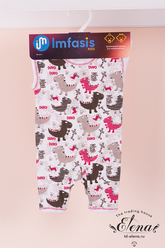 Песочник из интерлока с набивным рисунком. На плечах застёжка на кнопки.