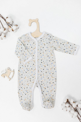 Комбинезон для малышей выполнен из хлопковой ткани с набивным рисунком. С длинными рукавами и удобной застёжкой на кнопках по всей длине изделия.