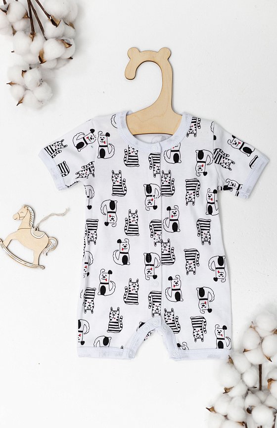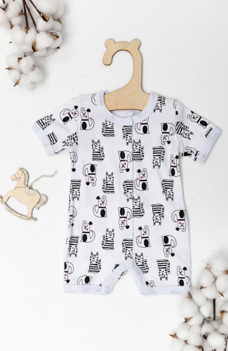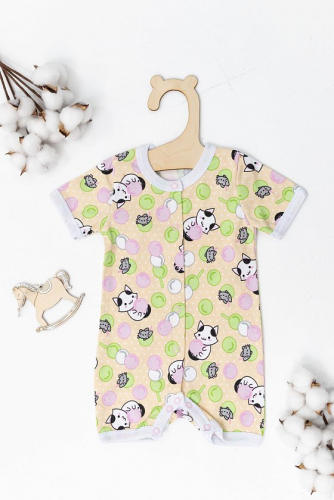 Песочник из интерлока с набивным рисунком. С коротким рукавом. "Ножки" и центральная застёжка на кнопках.