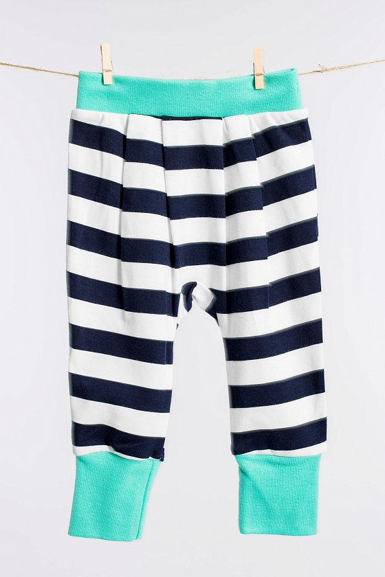 Брючки для самых маленьких выполнены из хлопка, внизу с отворотом, по поясу на широкой резине.
