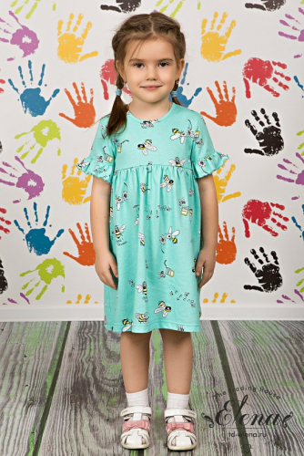Сорочка выполнена из х/б полотна с набивным рисунком в сочетании с однотонным. Рукав сорочки цельнокроеный, короткий. Спереди настрочен карман. Горловина и низ обработаны бейкой, также детали изделия украшены декоративной строчкой. Низ сорочки с закруглениями к боковым швам.
