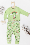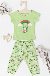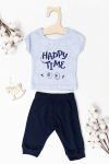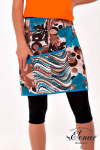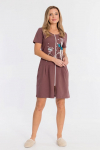 Костюм выполнен из однотонного футера с лайкрой, состоит из юбки и топа. Юбка прямая, с боковыми карманами и поясом на резине. Топ слегка расклешенный, с декоративными бретелями. На топе и юбке вышивка.