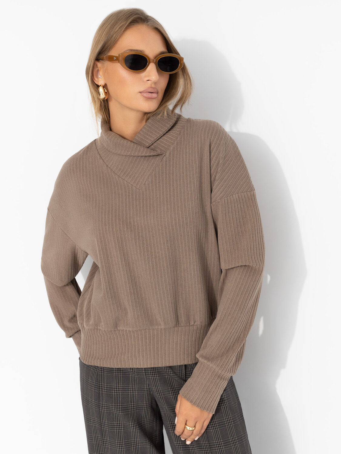 Джемпер ЧАРУТТИ стал воплощением её кипучей энергии, мягко согревая после активного дня. Невероятно тактильно приятная ткань, обволакивающая словно объятиями, делала его идеальным спутником для прогулок в парке или встреч с друзьями за чашкой кофе. Акцентный фасон идеально отражал её харизматичной характер. Друзья говорят, что джемпер сшит словно специально для вас. Джемпер с объемным воротом. Линия плеча спущена. Фактура материала – лапша.