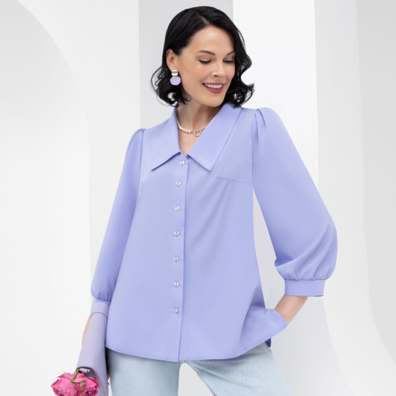 Campo di Lavanda! Эта модель превращает скучный офис в цветущее лавандовое поле! Ткань держит форму, силуэт убирает акцент с талии. Глаза отдыхают на этой чудесной блузе от CHARUTTI. Он захочет любоваться весь день! И вечер!