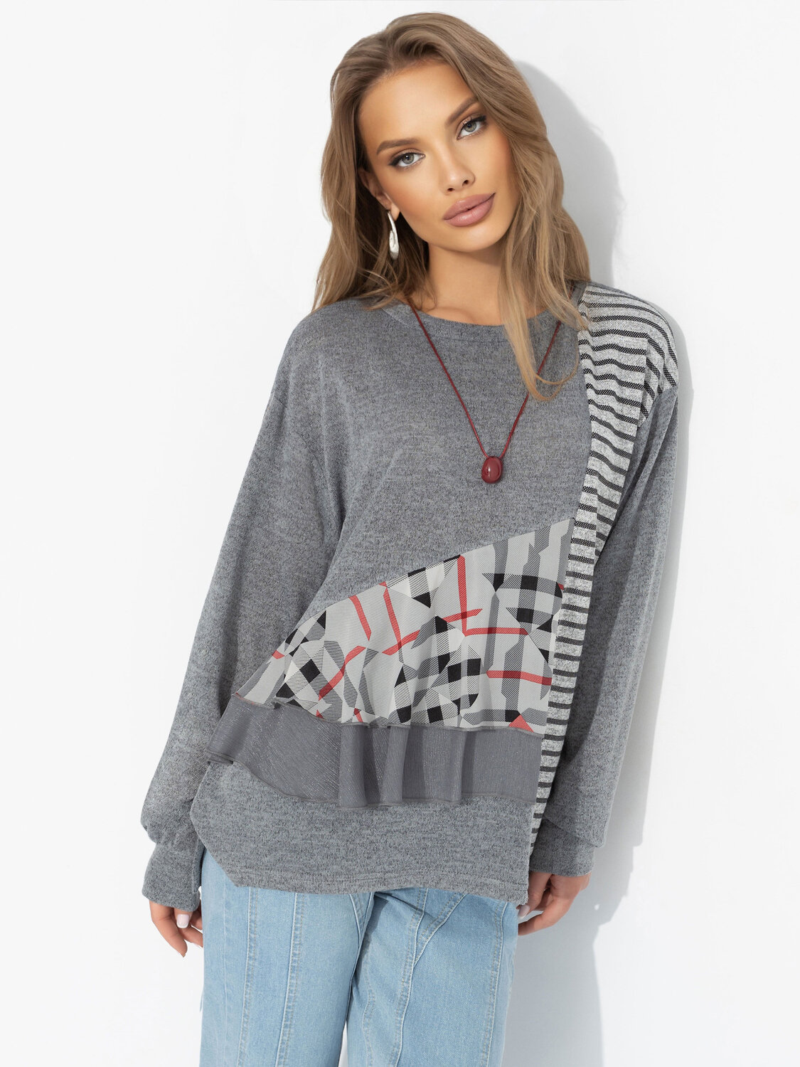 Вивьен Вествуд поставила бы лайк! Контраст фактур, геометрия и немного бунтарства ‒ для тех, кто выбирает свой индивидуальный стиль. Свобода, индивидуальность и британский шик в каждом движении. Свитшот из трикотажа с вставками из шифона и необычным дизайном. Лёгкий оверсайз, комфортная посадка, не мнётся. Оценят поклонницы экспериментов и продуманных деталей!