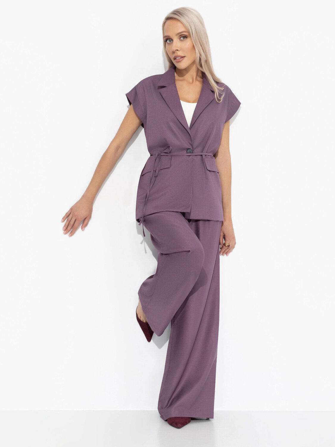 Жилет ЧАРУТТИ цвета Future Dusk стал её талисманом. В его строгих линиях и мягкой ткани живет её мечта — быть сильной, но оставаться нежной. Каждый день, надевая его, она чувствует уверенность для смелых шагов и телефонных звонков незнакомым людям. Жилет в деловом стиле удлиненный. Изделие с лацканами. Удлиненна линия плеча с отворотами. Отвороты прошиты. Имитация карманов. Есть тонкий пояс в комплекте. Жилет застегивается на пуговицу.