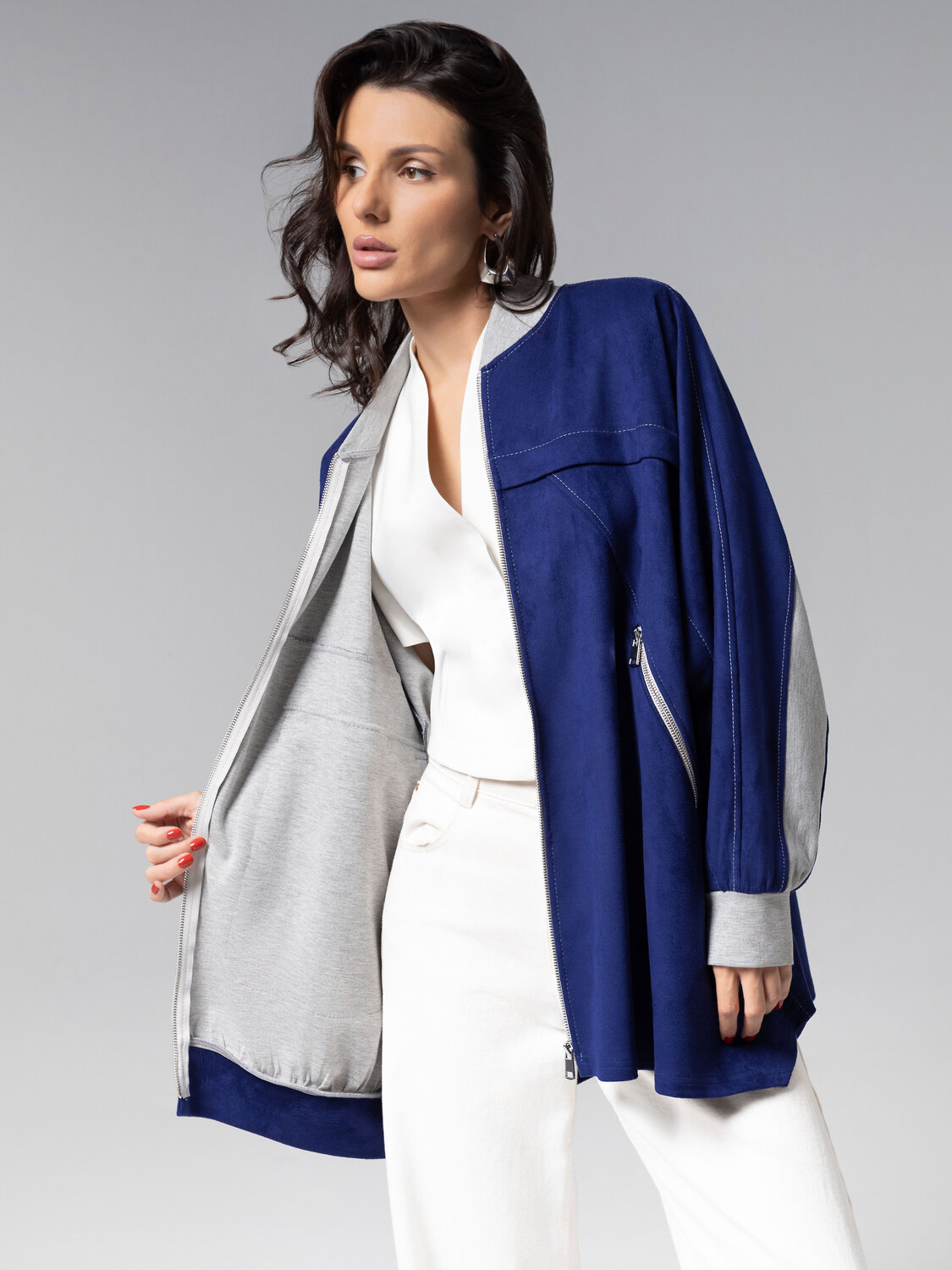 Авангардный бомбер от ЧАРУТТИ. Гиперболизированный объем подчеркивает вашу хрупкость. Oversize-силуэт бросает вызов традиционным пропорциям, создавая эффект парящего верхнего слоя. Материал изделия – экозамша премиального качества. Контрастные строчки прорезают объем изделия, подчеркивая виртуозность моделирования кроя. Идеальные швы, выполненные с ювелирной точностью, и подклад из хлопка, превращают бомбер в вещь про которую говорят: «на века». Функциональные карманы расположены асимметрично, усиливая вау-эффект от изделия.