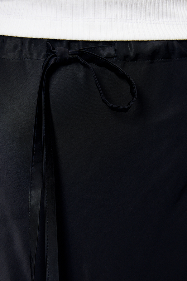 Юбка из вискозной ткани с сатиновым блеском, расширенная книзу. Крой юбки по косой. Пояс с эластичной резиной и кулиской.