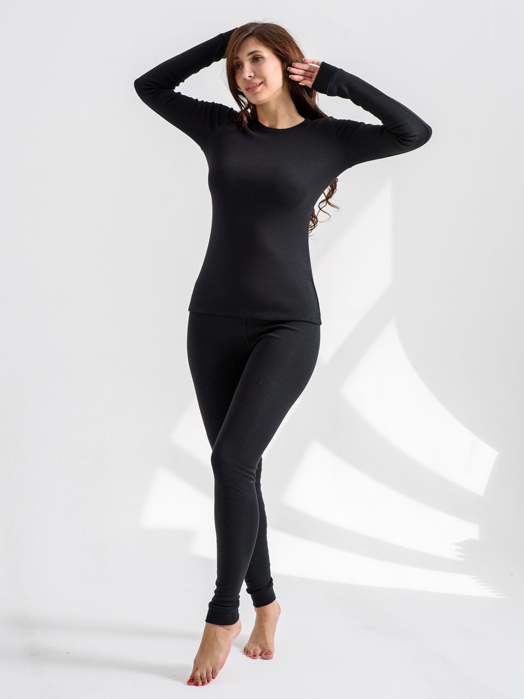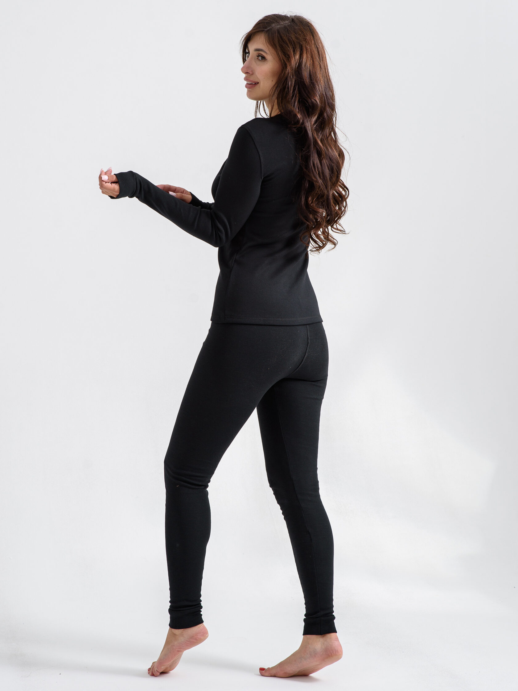 Комплект с браком, на лосинах дыра, причем не по шву.Теплый комплект, внутри что то типа флиса. Но на очень длинные руки. При моем росте 164, стандартной длины рук ( без особенностей), рукав в складку, лосины практически можно носить как колготки (длинные сами по себе и очень высокая посадка). На 46 размер, заказала р. 48 ( думаю вещи дадут усадку после стирки. Верх сидит плотно, лосины свободненько.