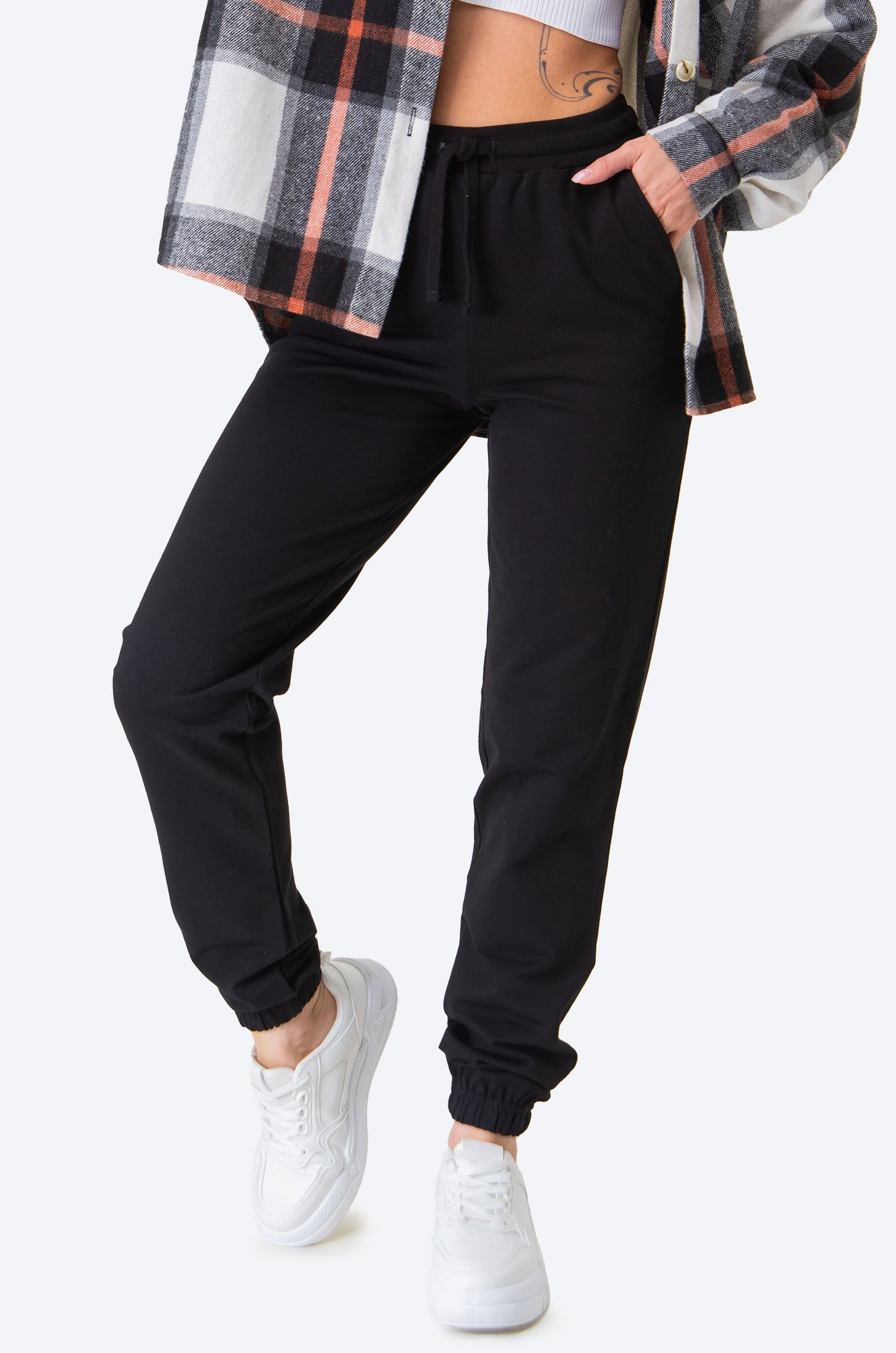Невероятно удобны..показатье женские спортивные брюки выполнены из мягкого, приятного к телу 100% хлопкового футера двухнитки. Высокая посадка подчёркивает талию. Черные джоггеры идеально подойдут для составления повседневных образов в стиле sport casual (спорт кэжуал).