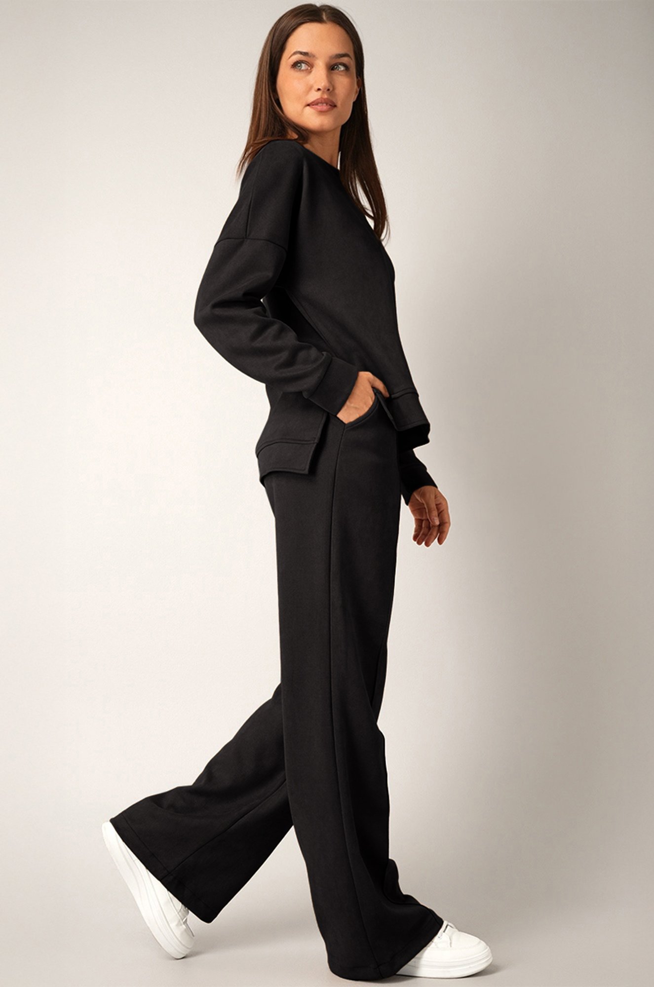 Женский костюм двойка, который влюбляе..показатьт с первого взгляда! Мягкая экозамша, уютный лонгслив и широкие штаны палаццо создают образ, в котором захочется провести весь день. Универсальный вариант для девушек и женщин, который легко подстраивается под ритм осени и весны.