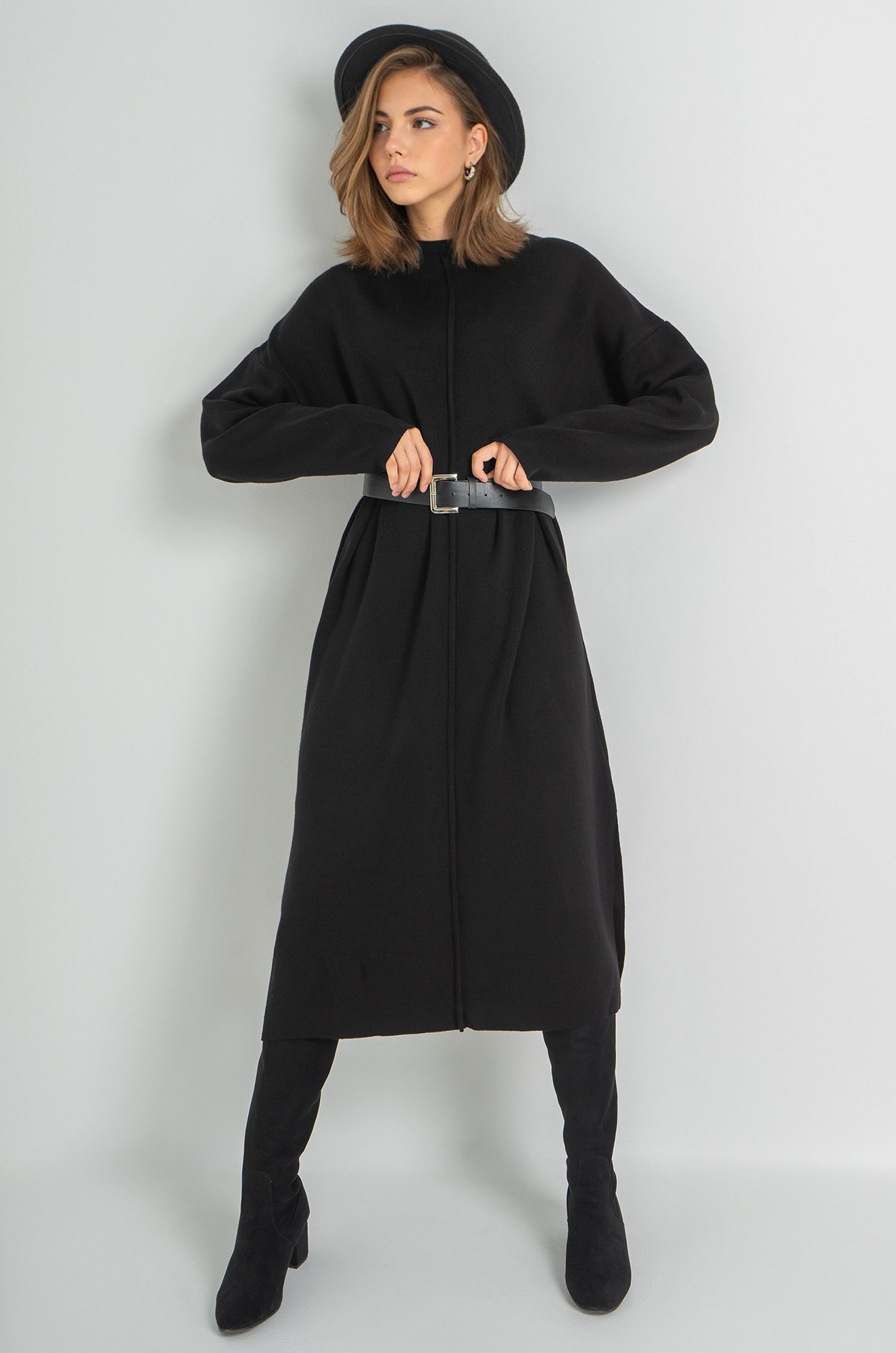 Черное женское платье оверсайз выполнено из вязаного трикотажа с добавлением шерсти. Шерсть отличается естественным теплом и невероятной мягкостью.
