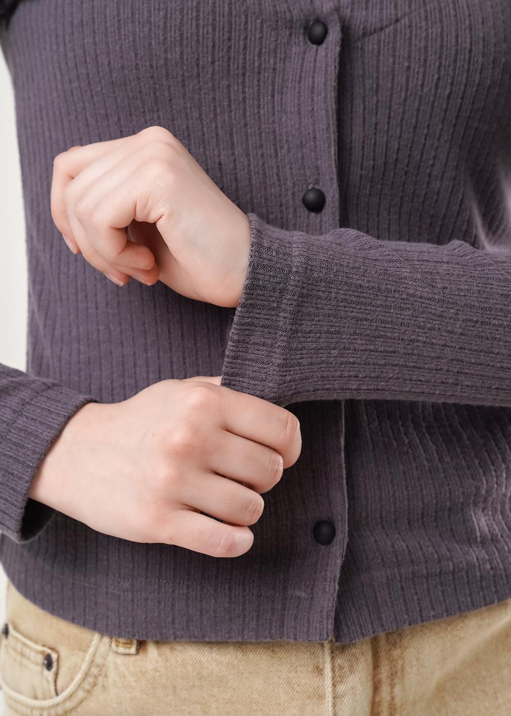 Джемпер из вискозного трикотажного полотна кашкорсе,состоящая из двух изделий скрепленных между собой по горловине,боковым швам - имитация многослойности.По горловине,пройме майки окантовка.По борту джемпера застежка на пуговицы. Длинный втачной рукав.